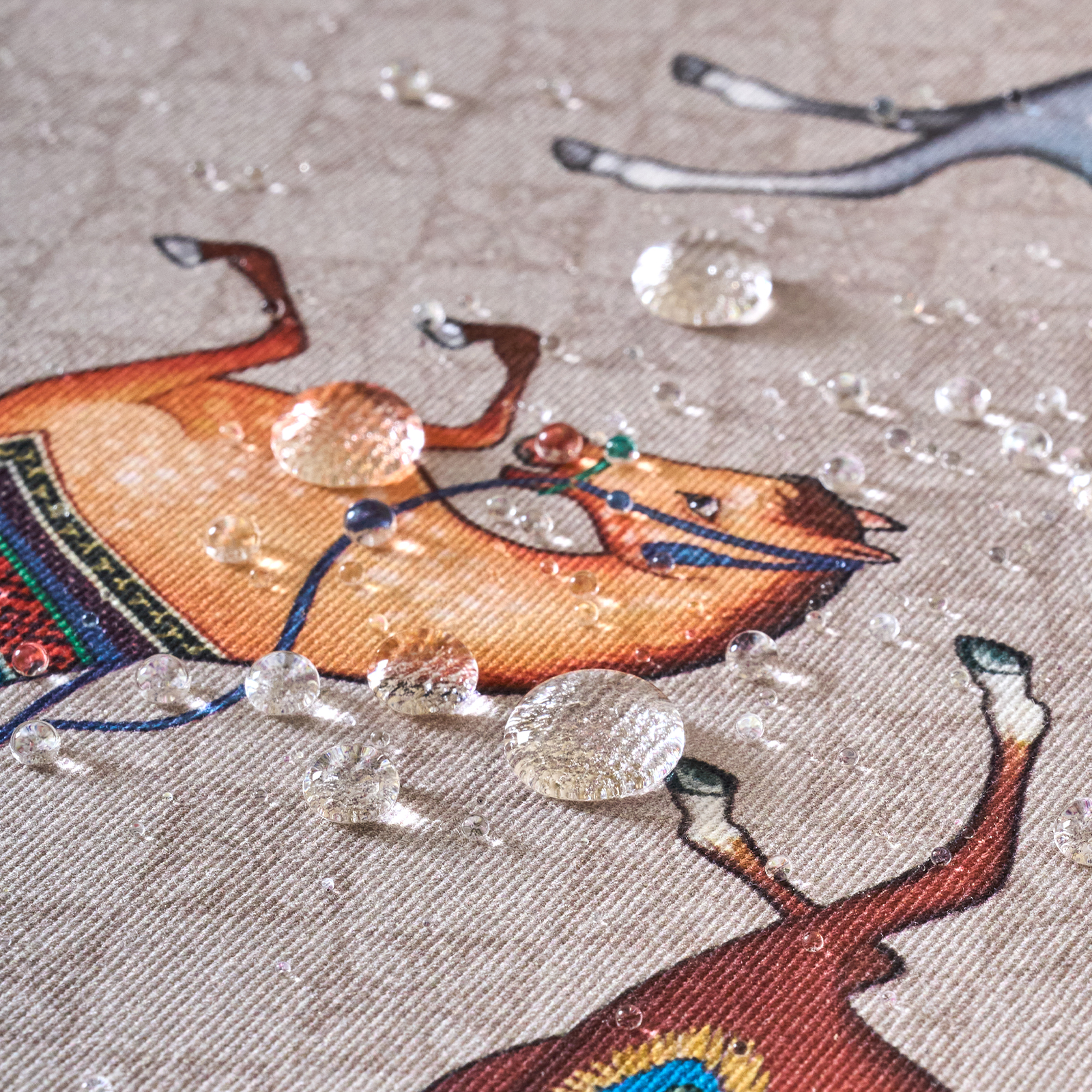 Изготовлена из 100% хлопка (твил) плотностью 190 г/м² — прочная, плотная, приятная на ощупь ткань, устойчива к износу и многократным стиркам. Благодаря водоотталкивающей пропитке поверхность не впитывает влагу, а капли воды легко удаляются салфеткой.