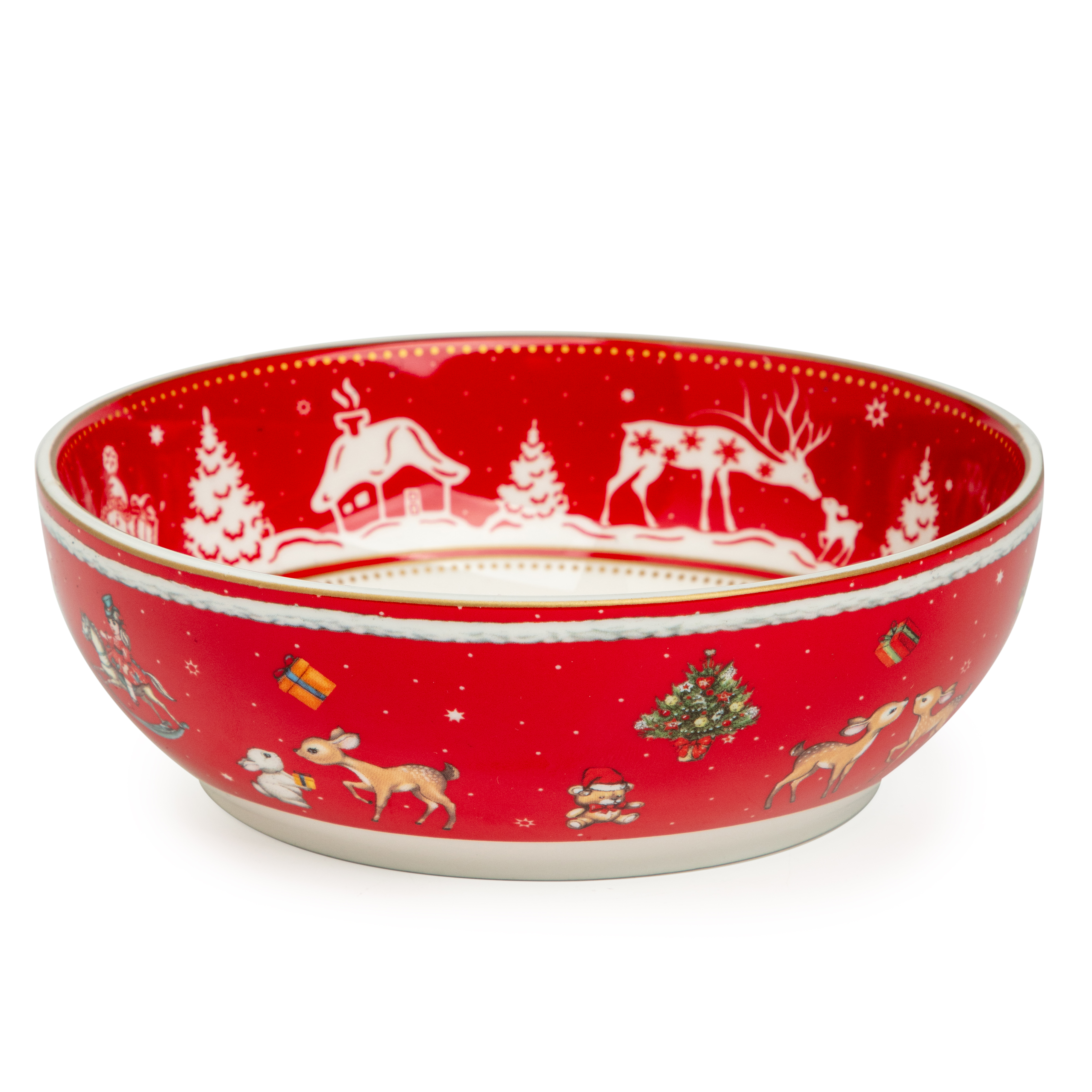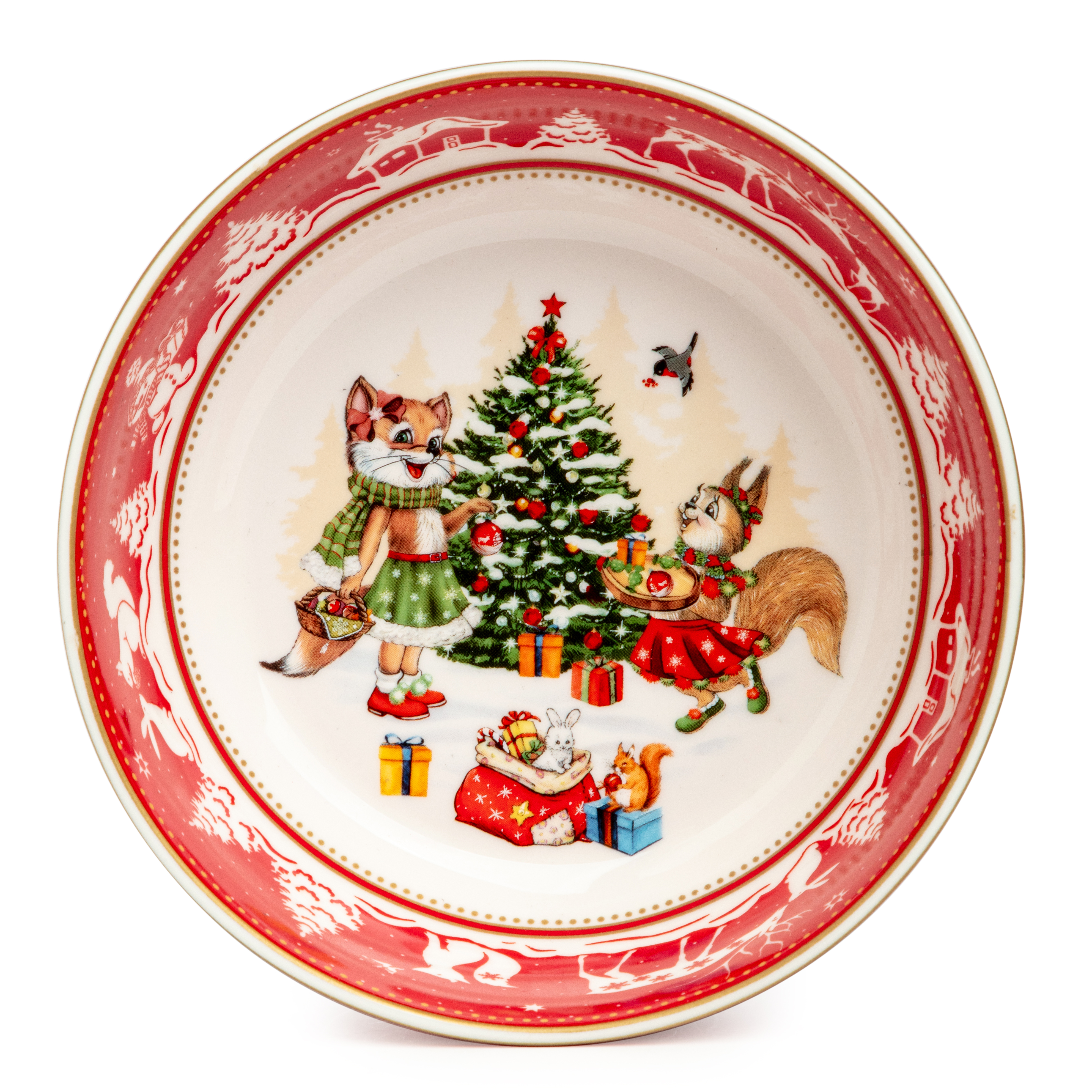 ТМ LEFARD New Year Collection для детей украсит праздничный новогодний стол и порадует Ваших детей в самые ожидаемые дни в году. С 1699 года указам Петра Первого Новый год празднуется в ночь на 1 января каждого года (по юлианскому календарю). Символом праздника стал дедушка с белой бородой, имя которого - Дед Мороз, и его помощница - девочка из снега по имени Снегурочка. Изделия с любимыми персонажами, лесными жителями и нарядной новогодней Елкой в веселом хороводе выполнены на тонкостенном высококачественном фарфоре. Посуда упакована в яркие коробки. Это прекрасный подарок. Продукция прошла сертификацию, безопасна для контакта с пищевыми продуктами. Можно использовать в СВЧ, не рекомендуется мыть в посудомоечных машинах во избежание повреждения золотой отводки (деколи) на изделиях.