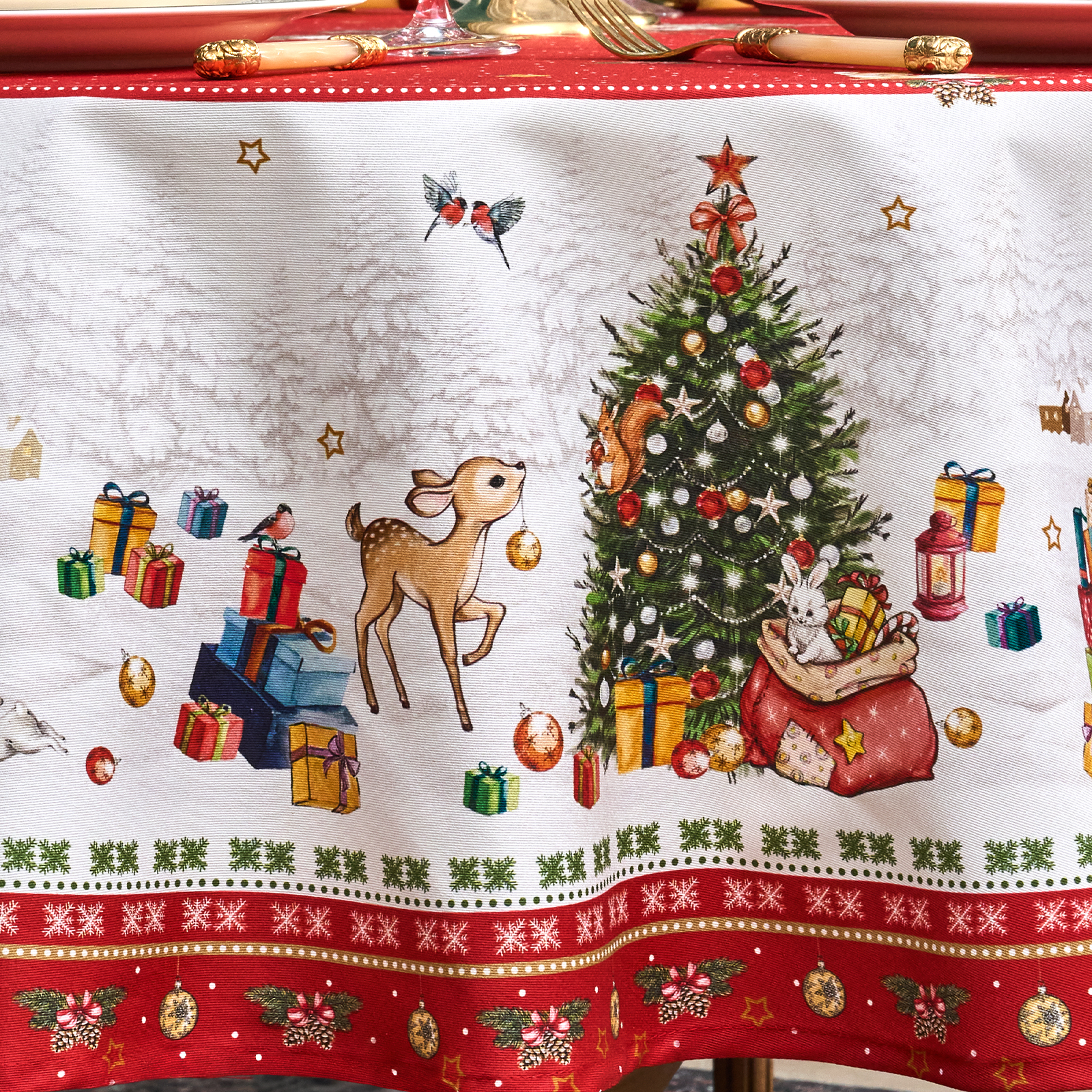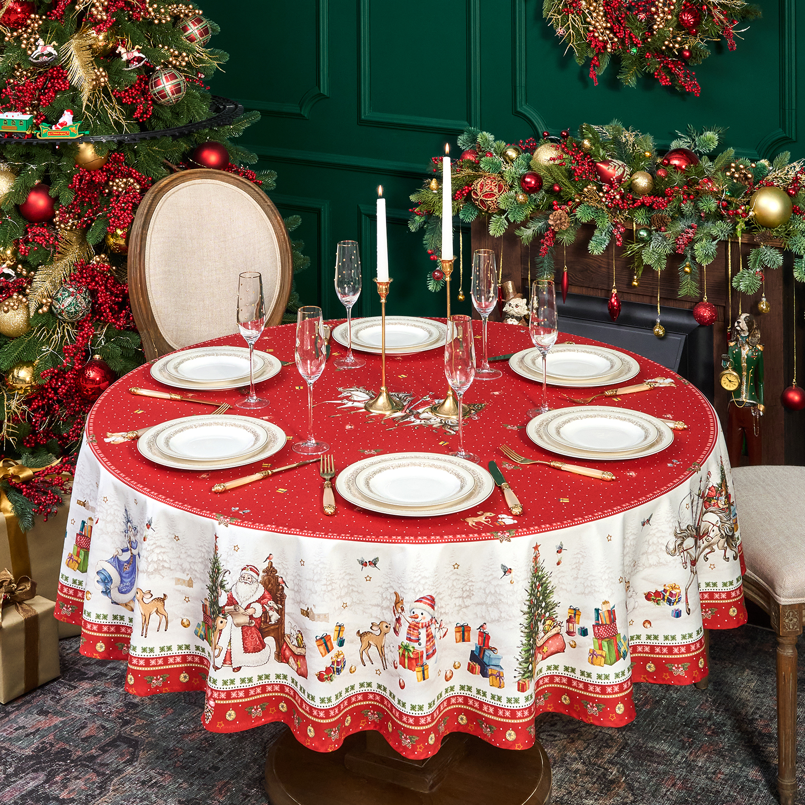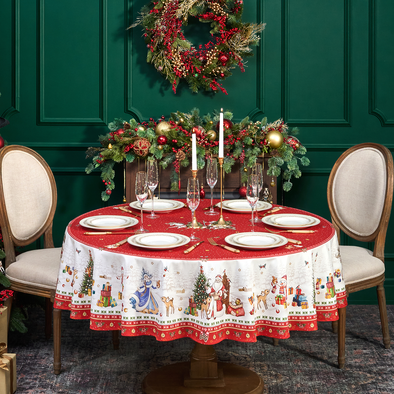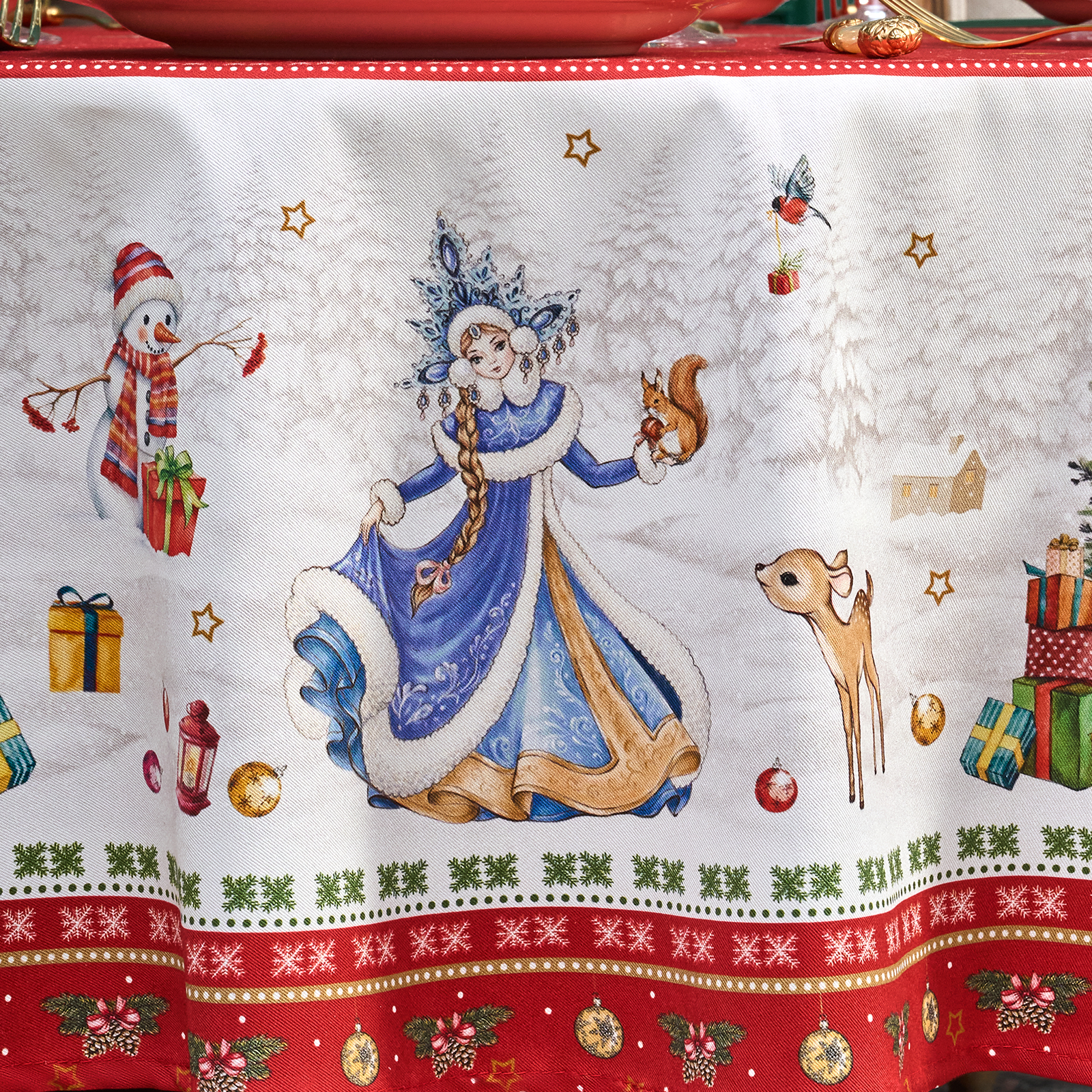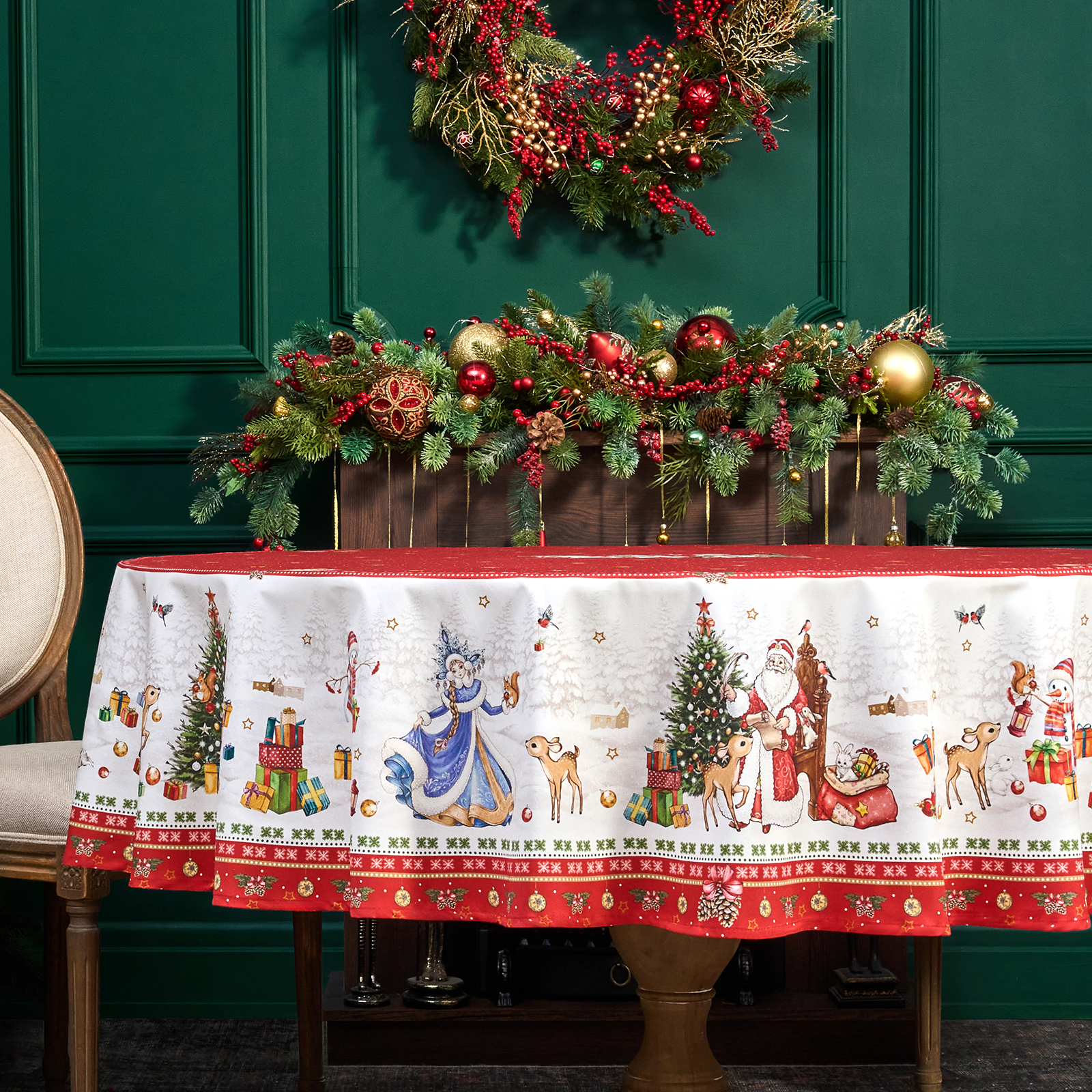 Новогодняя, скатерть на круглый стол из коллекции С Новым Годом от бренда Lefard — стильное и практичное решение для кухни, гостиной или праздничного интерьера. Изготовлена из 100% хлопка с водоотталкивающей пропиткой: ткань защищает поверхность от влаги и загрязнений, легко очищается и быстро сохнет.