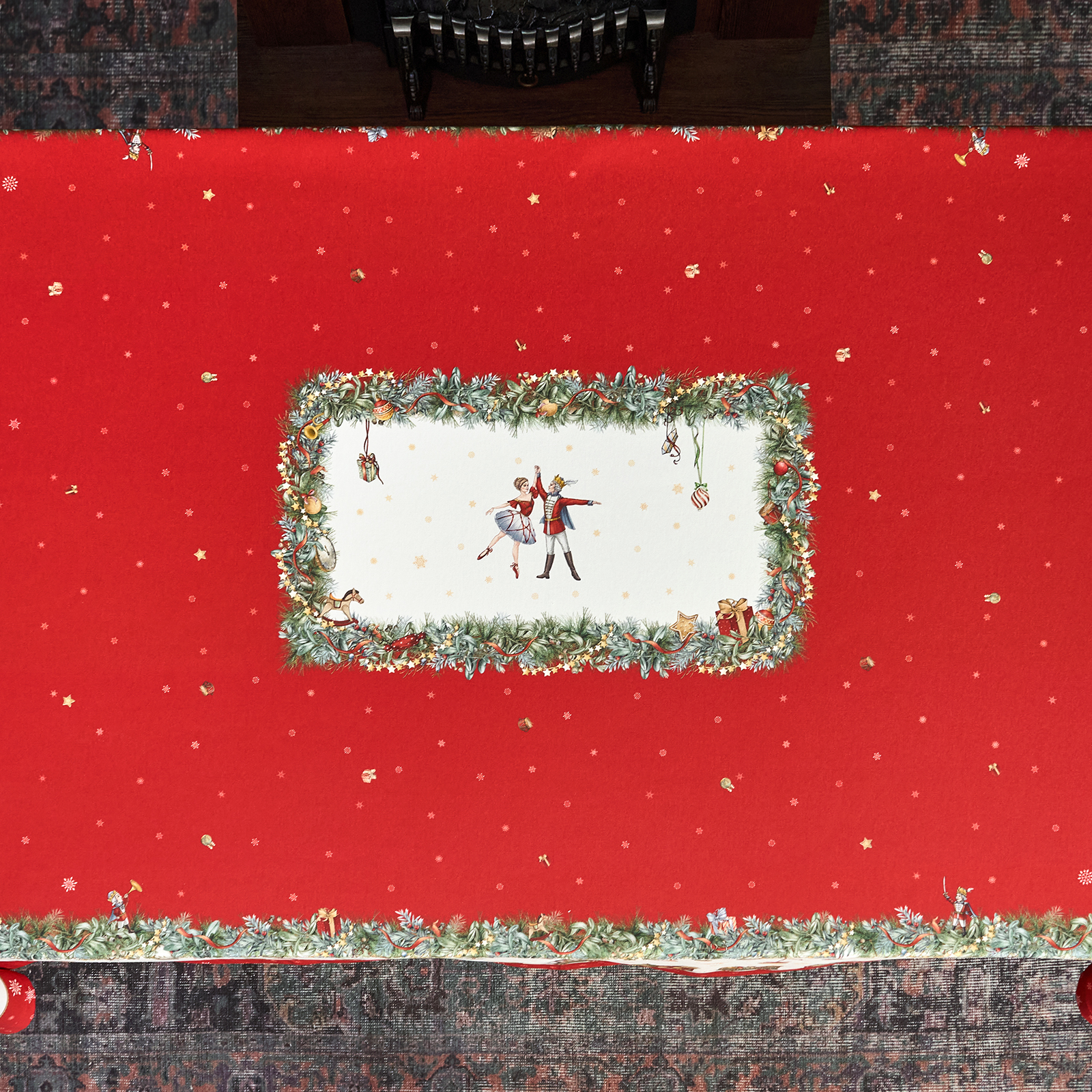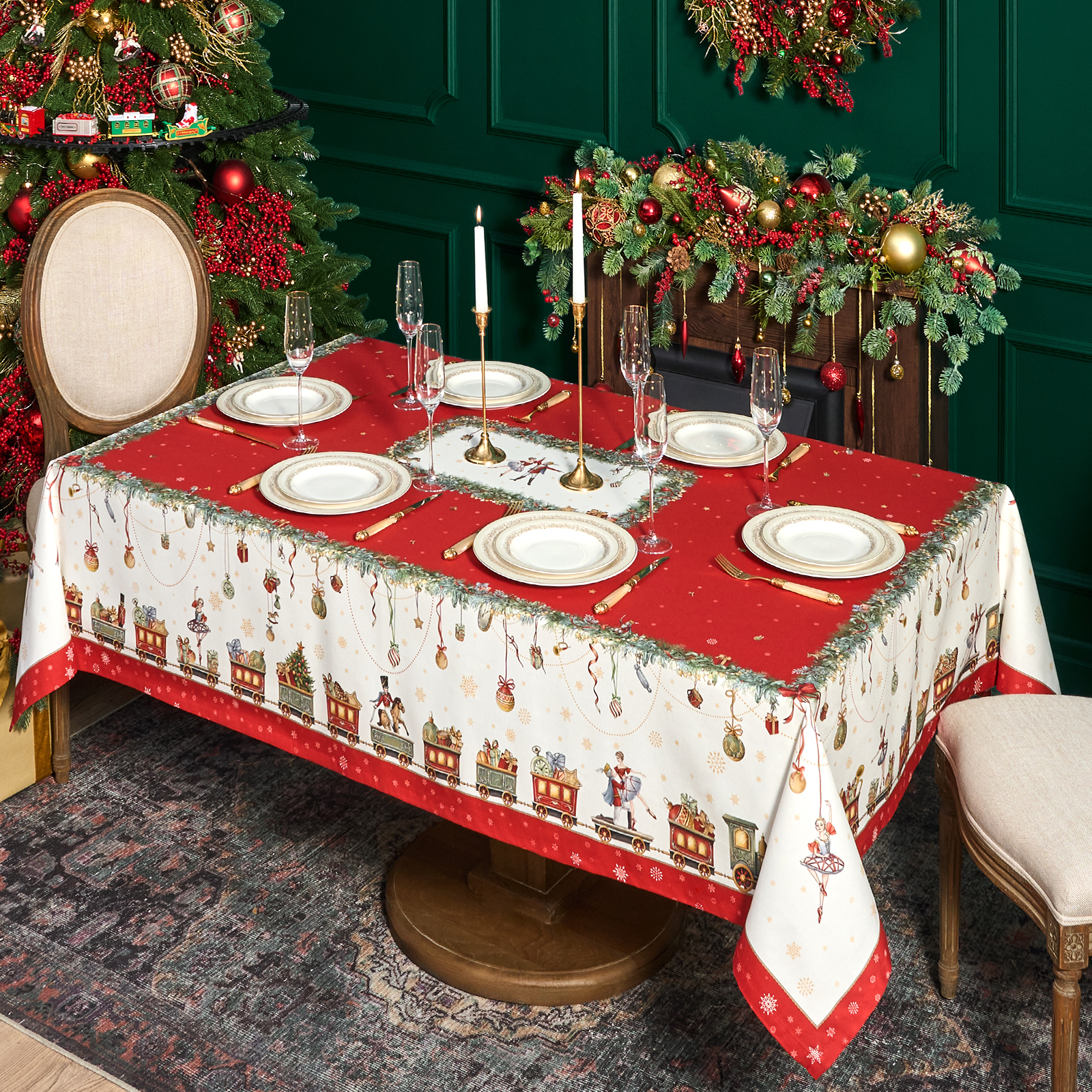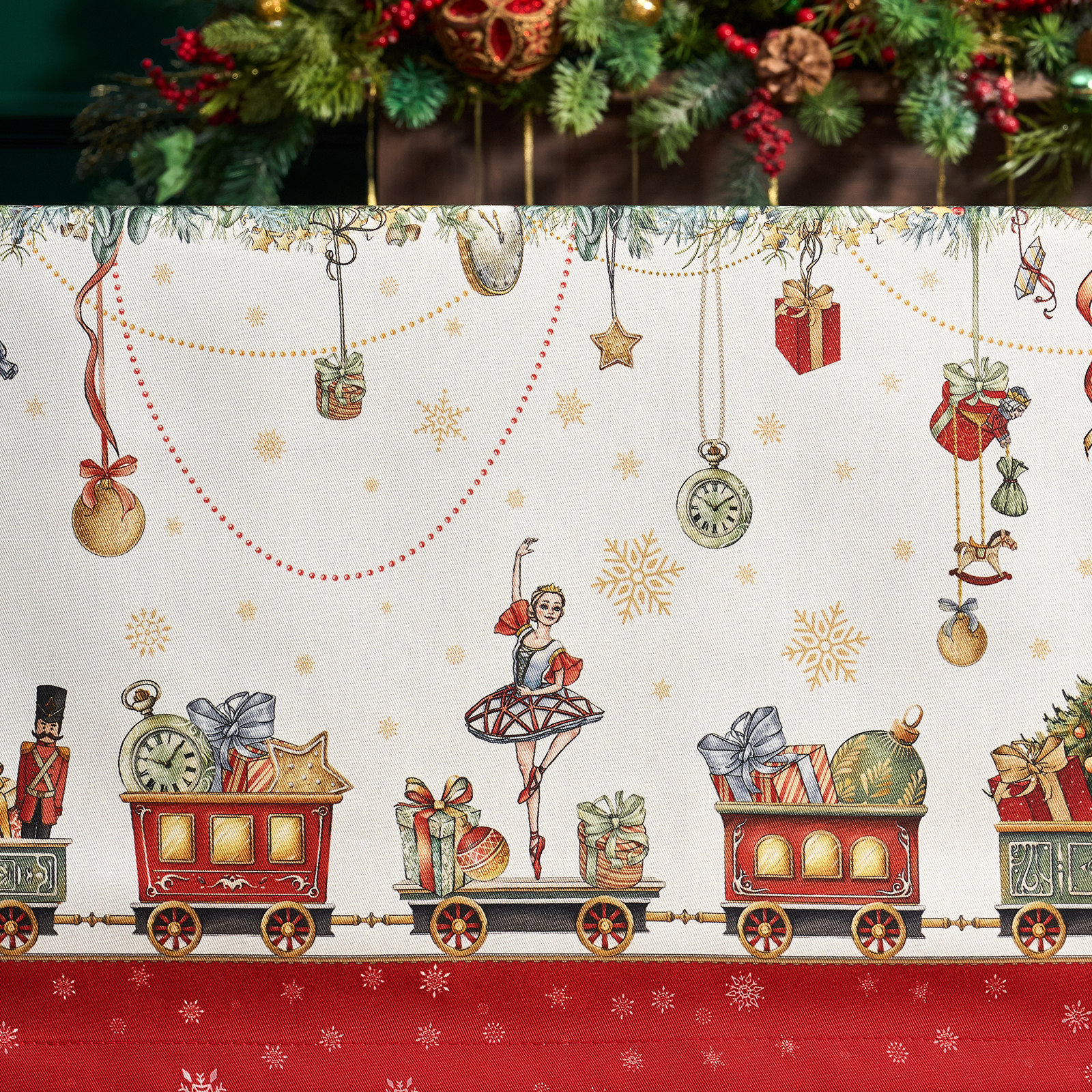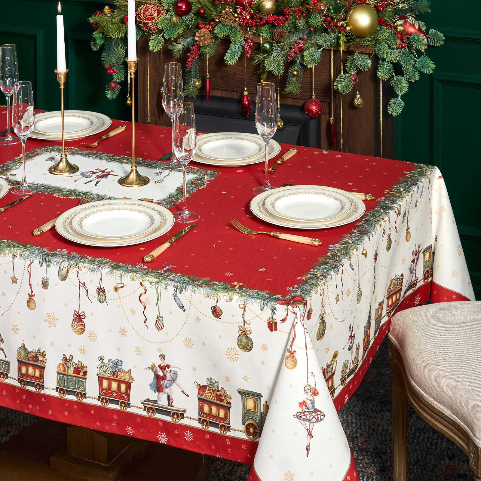 Скатерть создана по эксклюзивному дизайну для бренда Lefard и гармонирует с одноимённой посудой из коллекции Щелкунчик. Это текстиль высокого класса, который подойдёт как для домашнего использования, так и в качестве подарка.