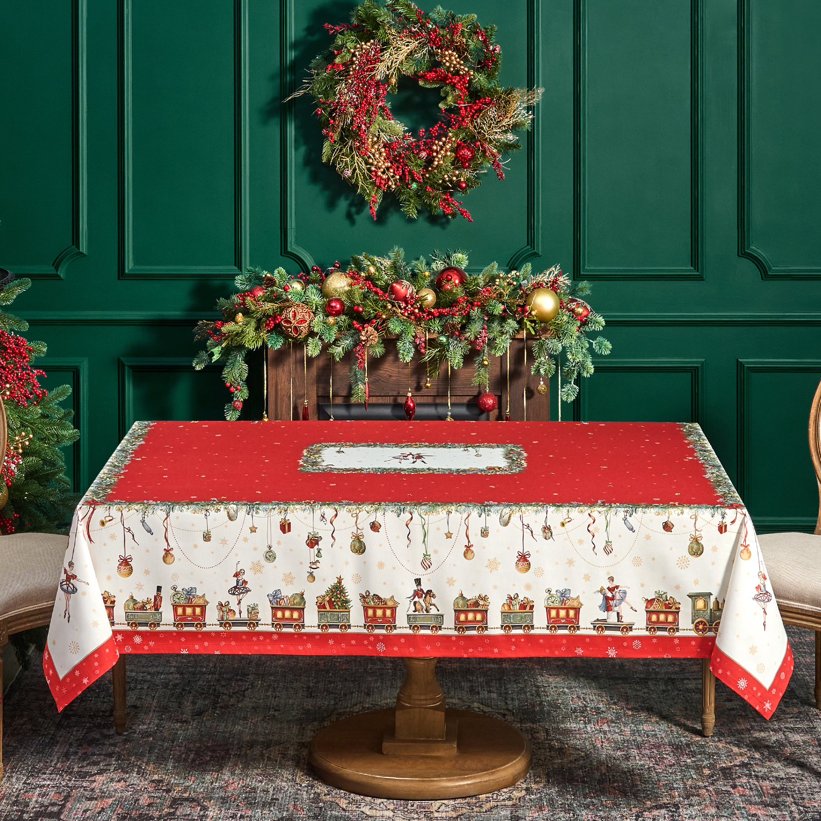 Скатерть от Lefard из коллекции Щелкунчик — элегантное решение для сервировки праздничного стола. Размер 160*220 подходит для больших столов, оптимальный размер стола 160x220 см, создавая равномерный и эстетичный свес.
