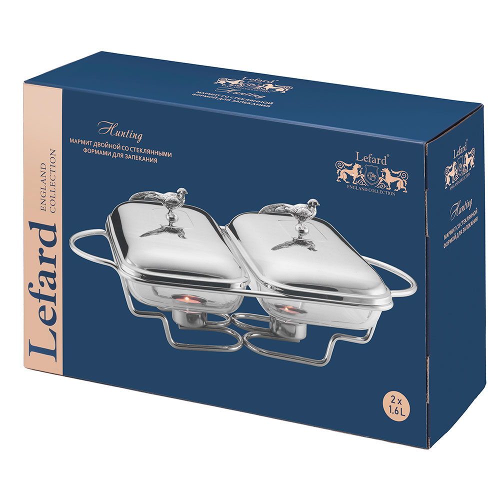 МАРМИТ ДВОЙНОЙ LEFARD СЕРИЯ "ОХОТА" СО СТЕКЛЯННЫМИ ФОРМАМИ ДЛЯ ЗАПЕКАНИЯ, 1,6Л/1,6Л