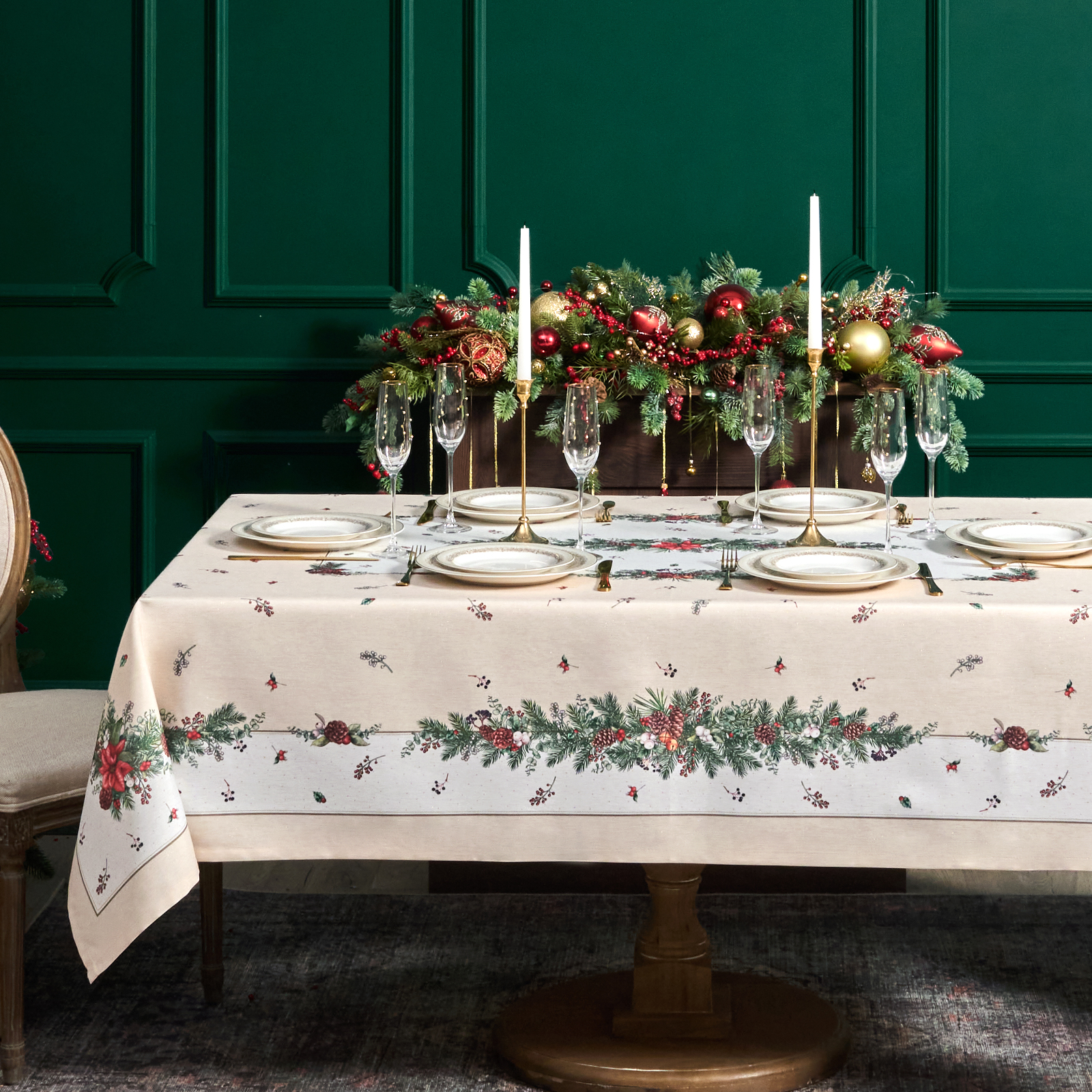 Скатерть из коллекции «Celebration» наполняет интерьер тёплым новогодним настроением и становится стильным акцентом зимнего декора.