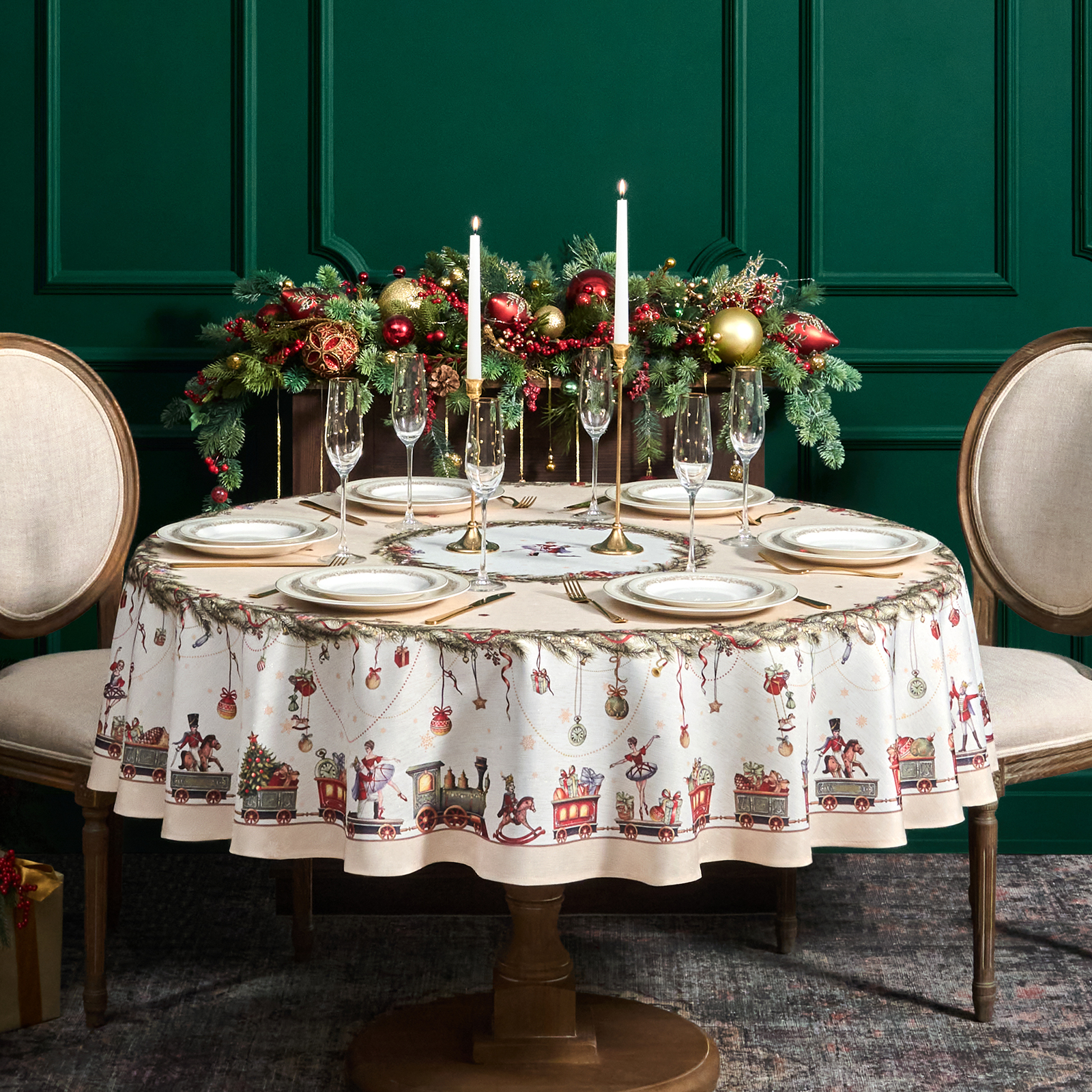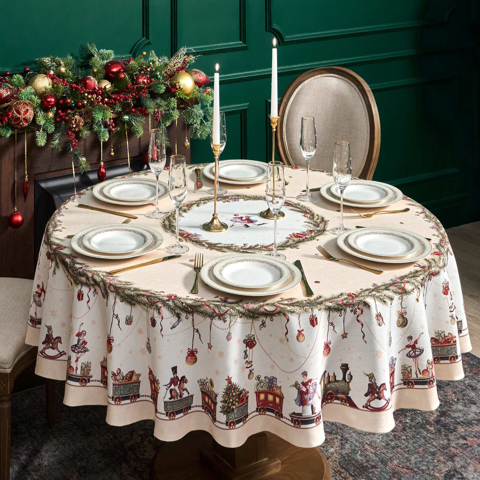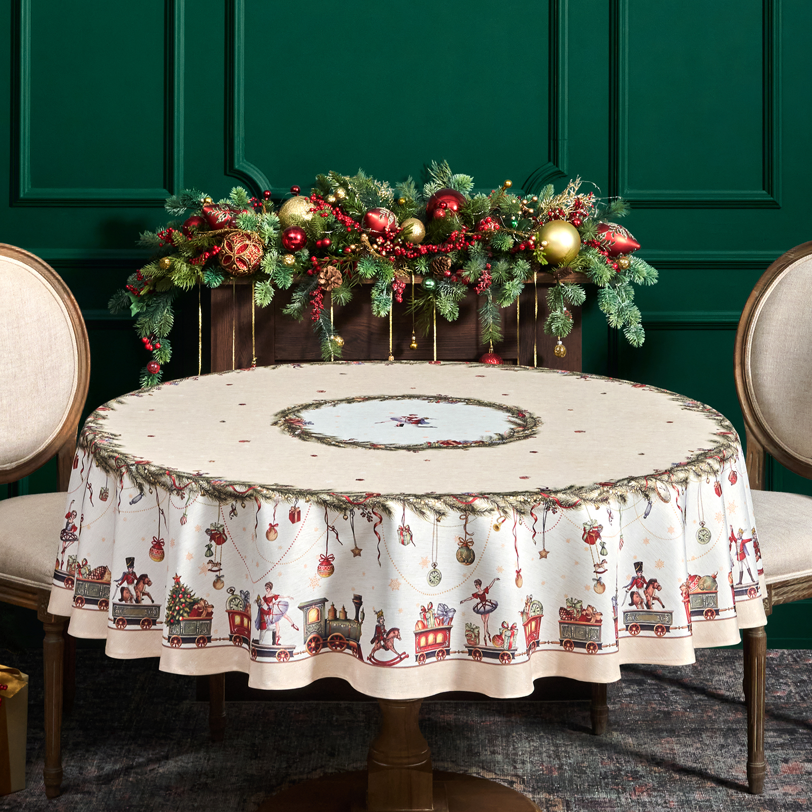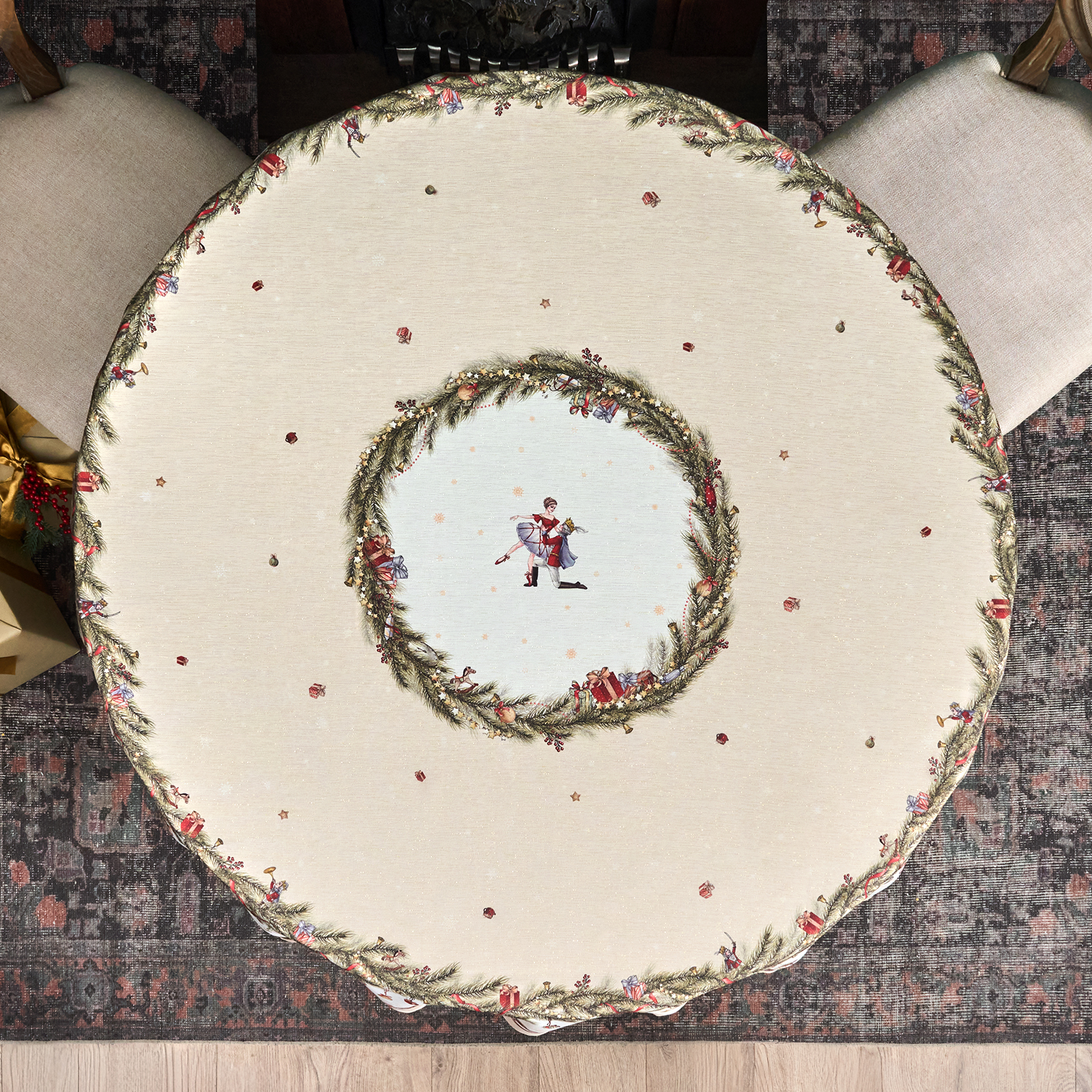 Новогодняя круглая скатерть Lefard из коллекции «Щелкунчик» — изысканное украшение для праздничного стола, которое создаёт атмосферу уюта и волшебства.