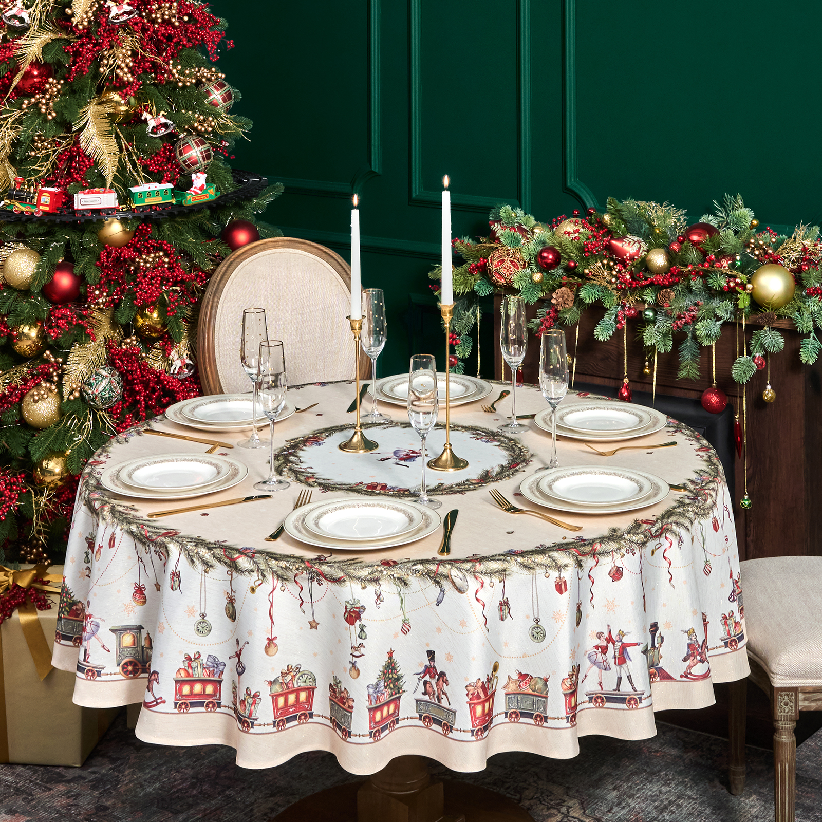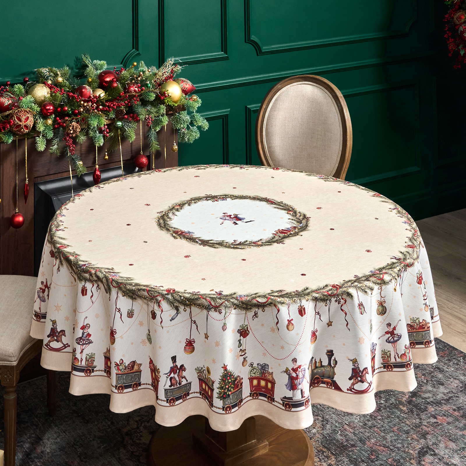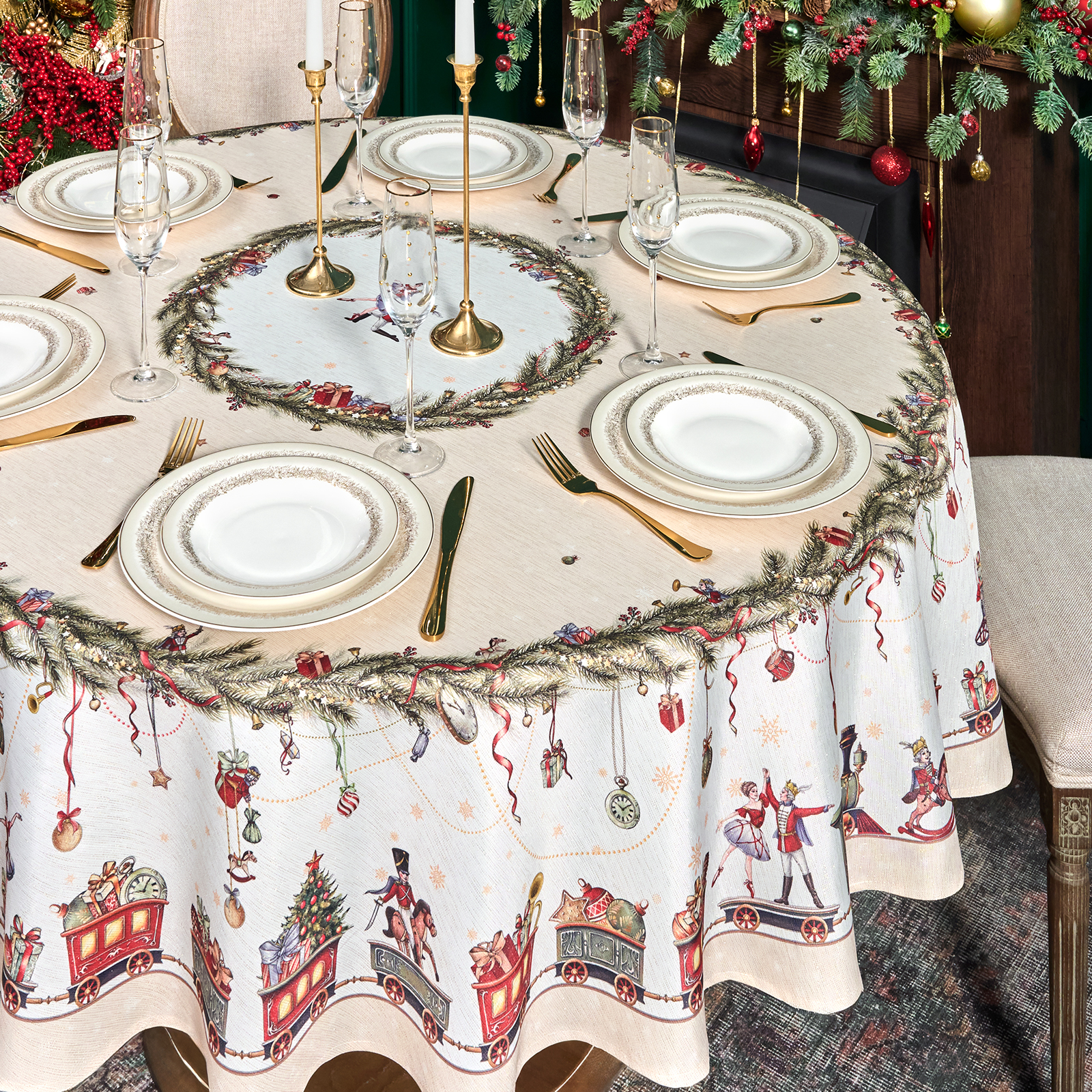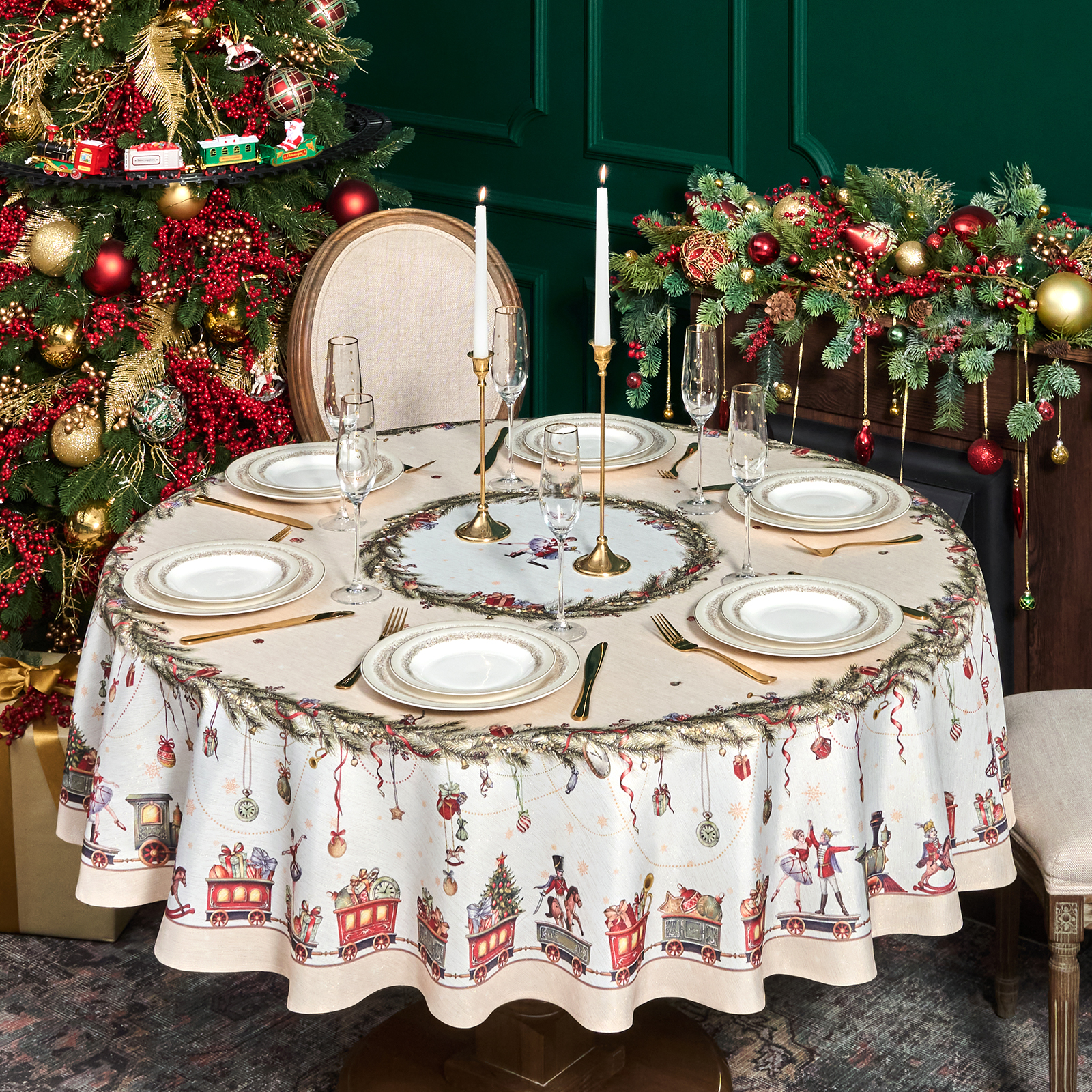 Новогодняя круглая скатерть Lefard из коллекции «Щелкунчик» — изысканное украшение для праздничного стола, которое создаёт атмосферу уюта и волшебства.