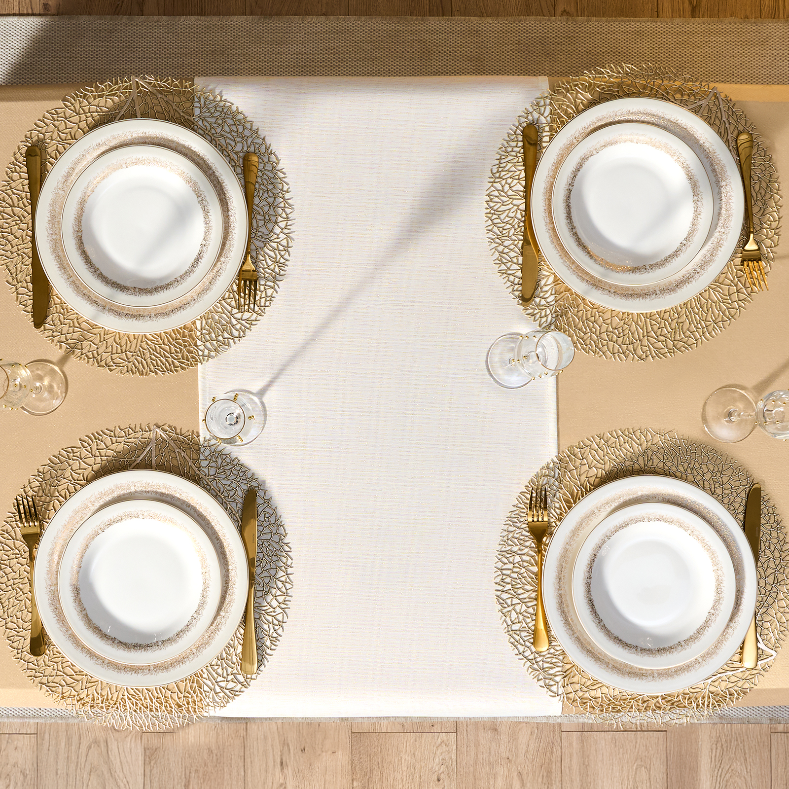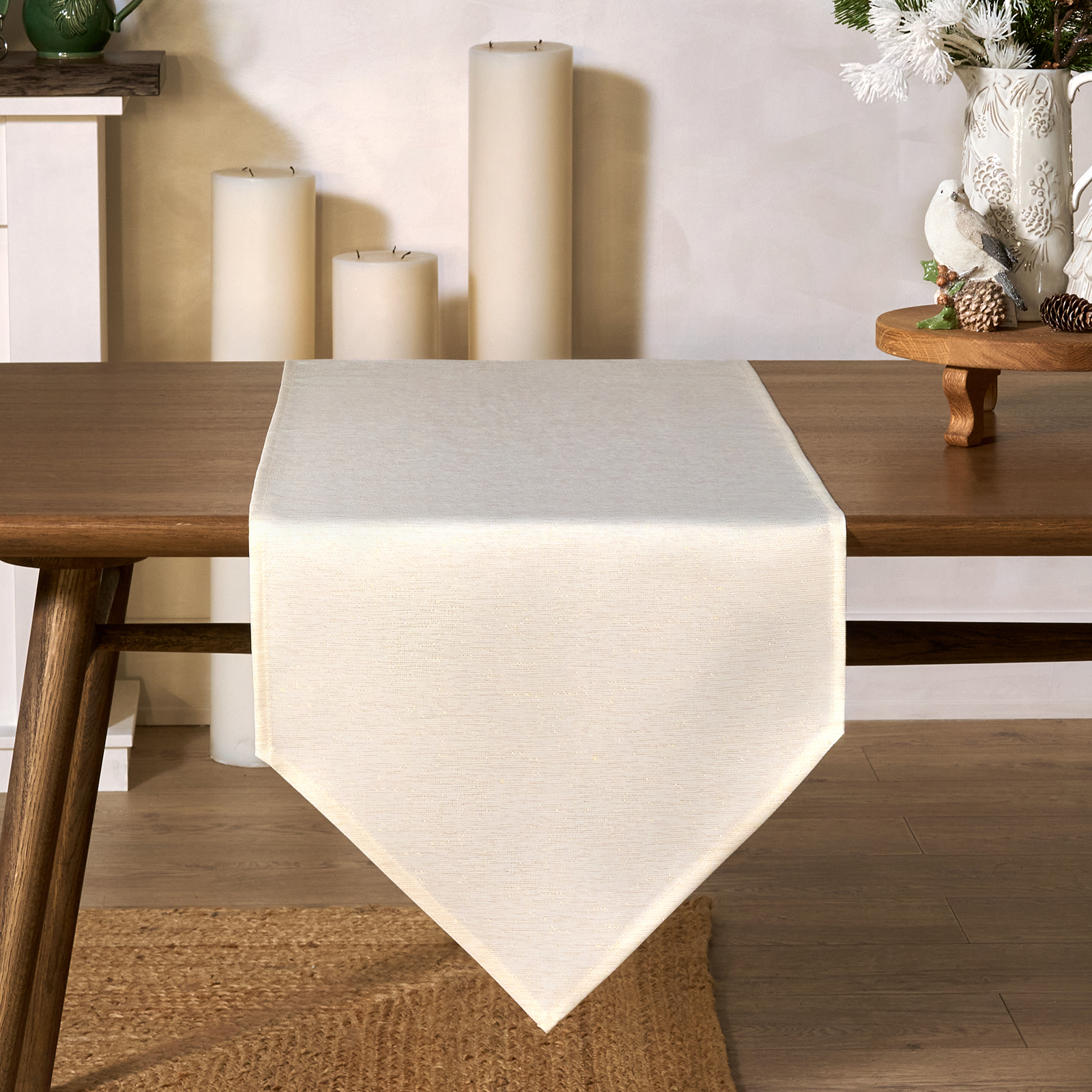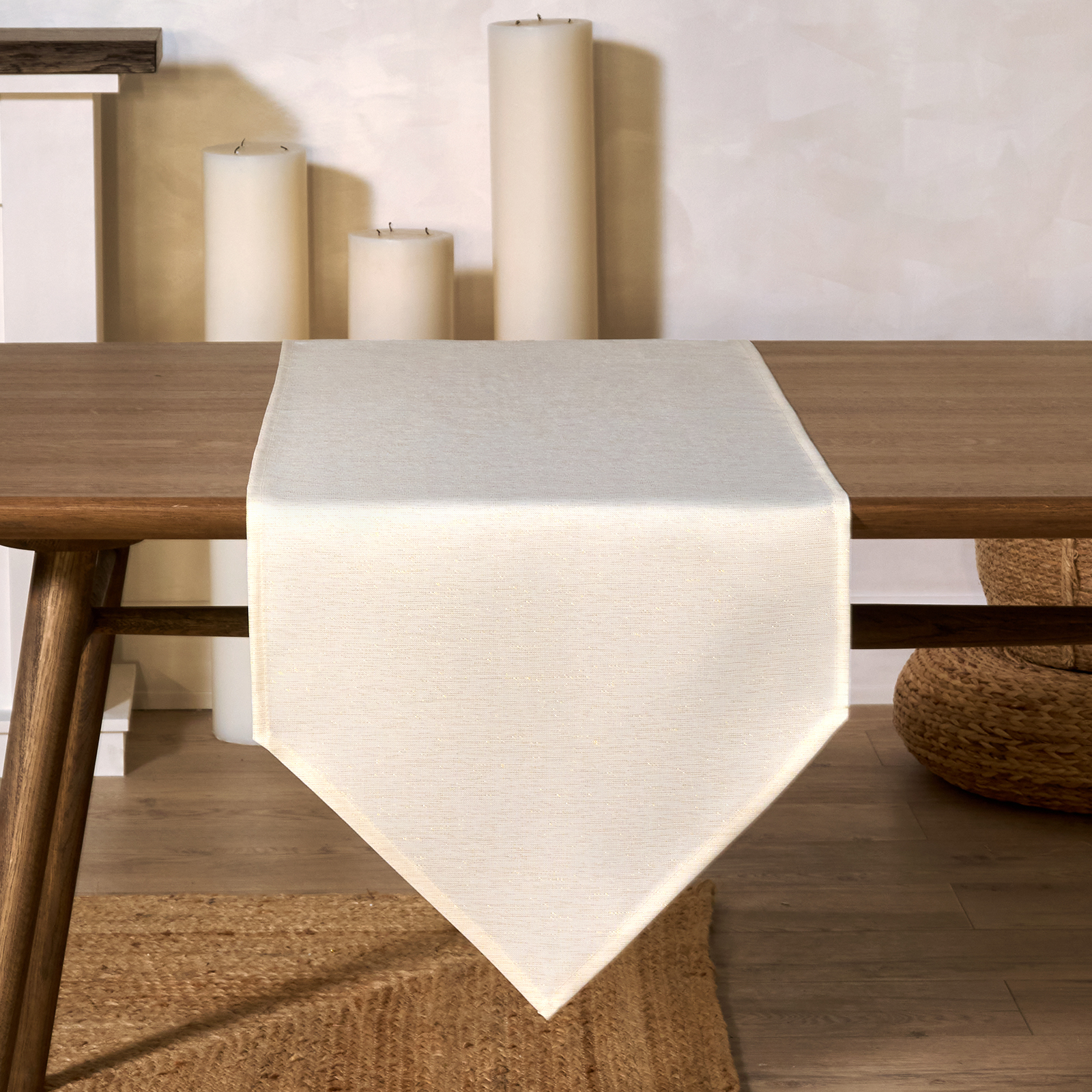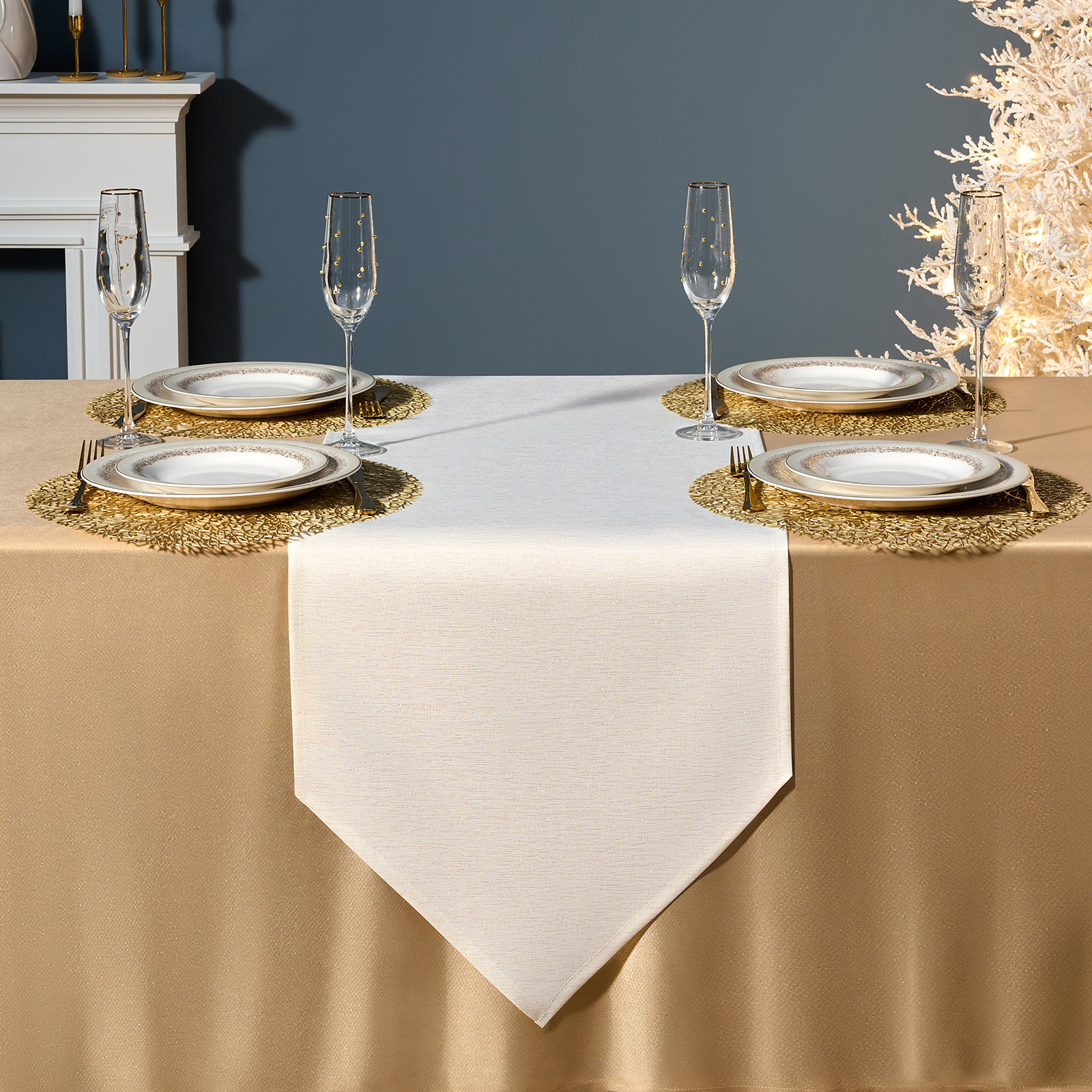 Размер 45×220 см идеально подходит для прямоугольных столов, а также может использоваться поверх однотонной скатерти для создания выразительного и завершённого образа стола. Эффектно смотрится в центре композиции, подчёркивая красоту посуды, подсвечников и сервировочных аксессуаров.