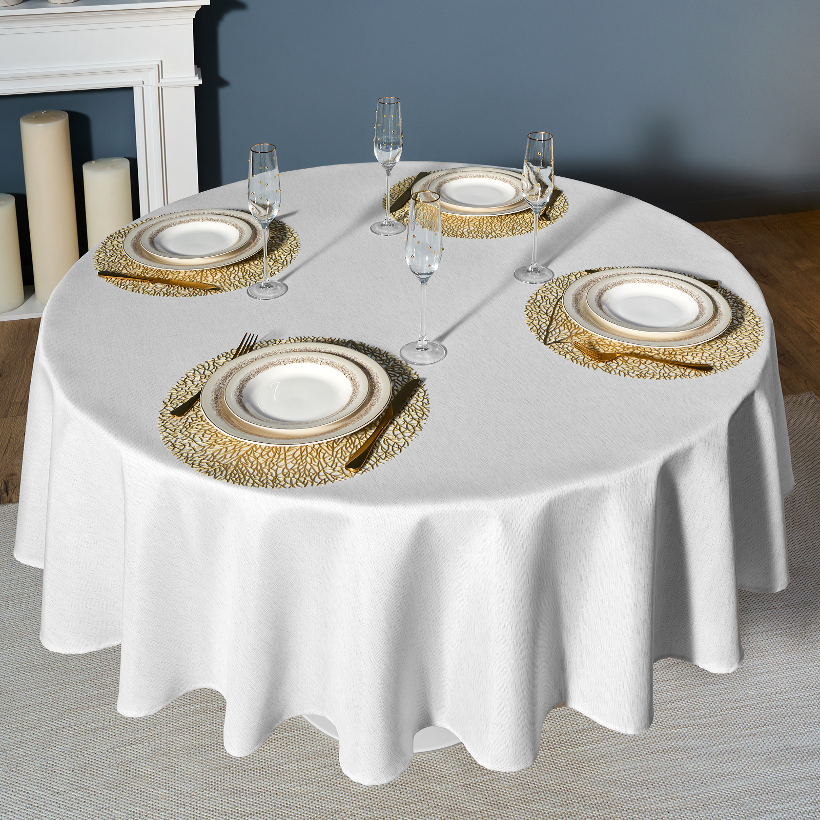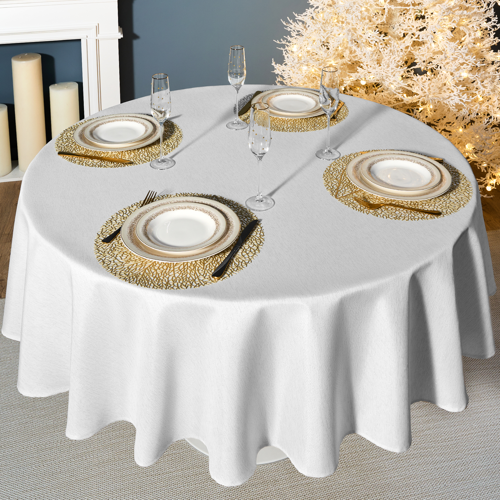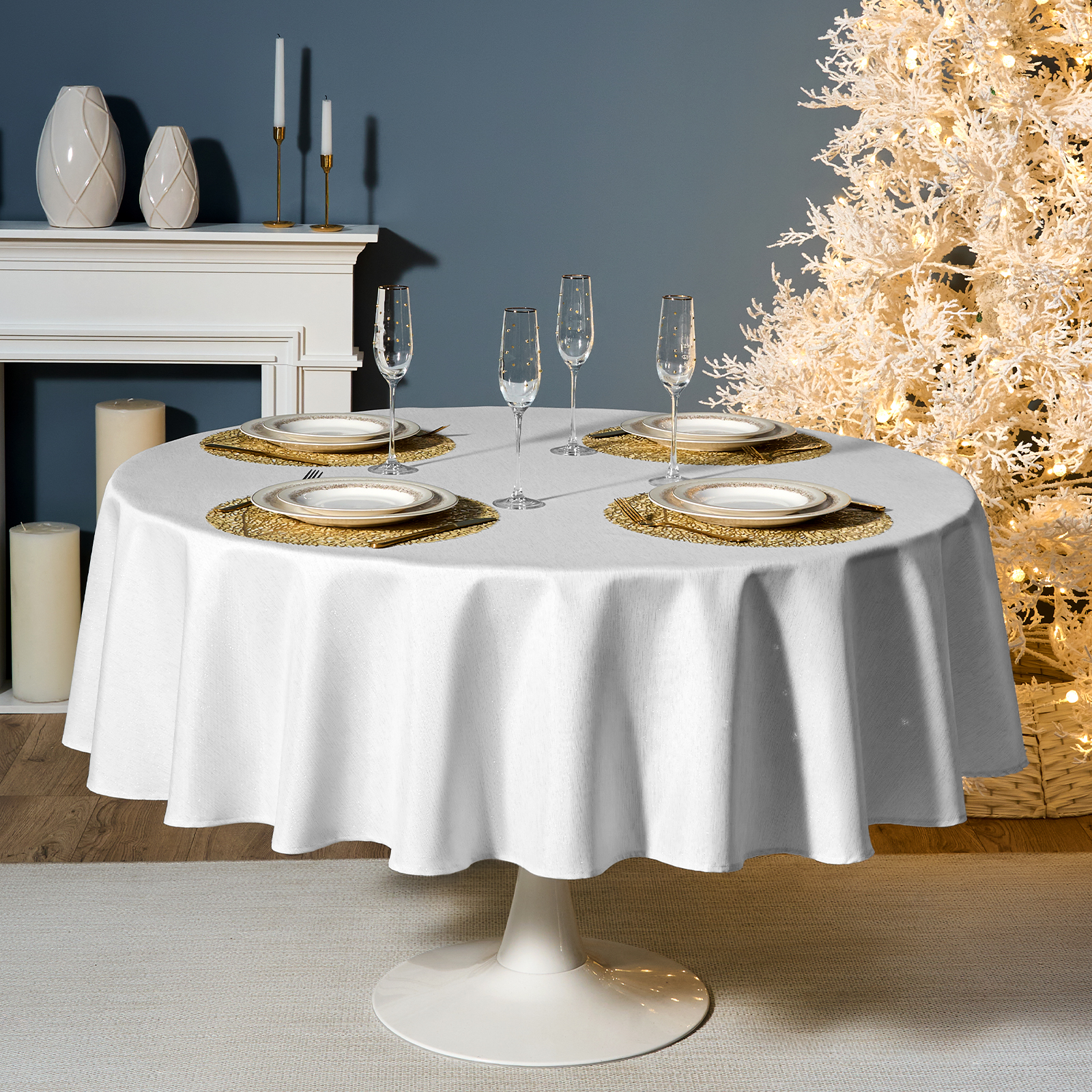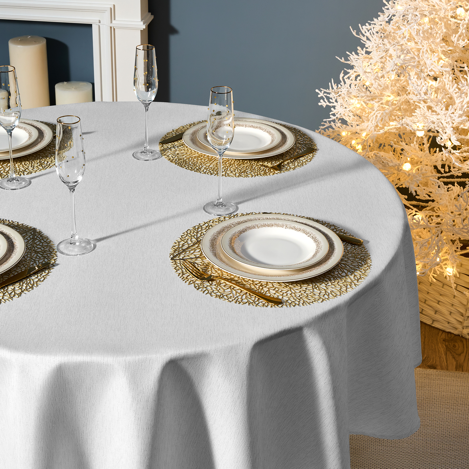 СКАТЕРТЬ D190 CM КРУГЛАЯ, "ФЕЕРИЯ. СЕРЕБРО", ЦВЕТ: БЕЛЫЙ, TM LEFARD, ПОЛИЭСТЕР 100% (КОР=22ШТ.)