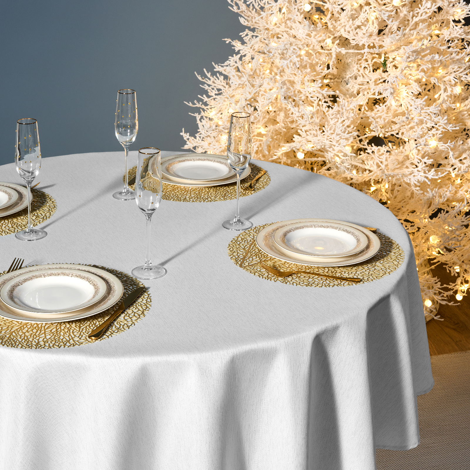 Новогодняя скатерть Lefard из коллекции «Феерия. Серебро» — воплощение тепла, уюта и праздничной атмосферы. Диаметр 190 см идеально подходит для большого круглого или овального стола, создавая аккуратный свес и элегантное оформление. Тканевая скатерть с мягким золотистым мерцанием красиво отражает свет ламп и свечей, наполняя интерьер уютом и торжественностью. Она подчеркнёт красоту посуды и станет главным акцентом новогодней сервировки. Идеально подойдёт для праздничного ужина, семейных встреч и тёплых моментов в кругу близких.