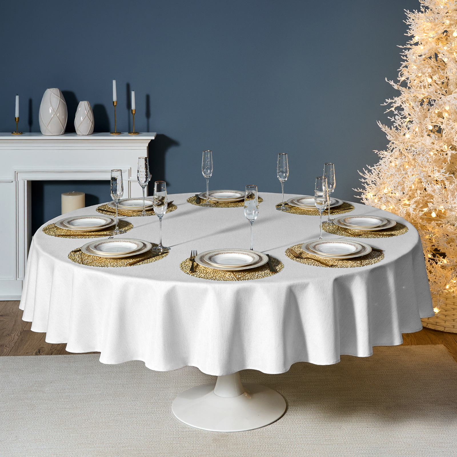 СКАТЕРТЬ D220 CM КРУГЛАЯ, "ФЕЕРИЯ. СЕРЕБРО", ЦВЕТ: БЕЛЫЙ, TM LEFARD, ПОЛИЭСТЕР 100% (КОР=16ШТ.)