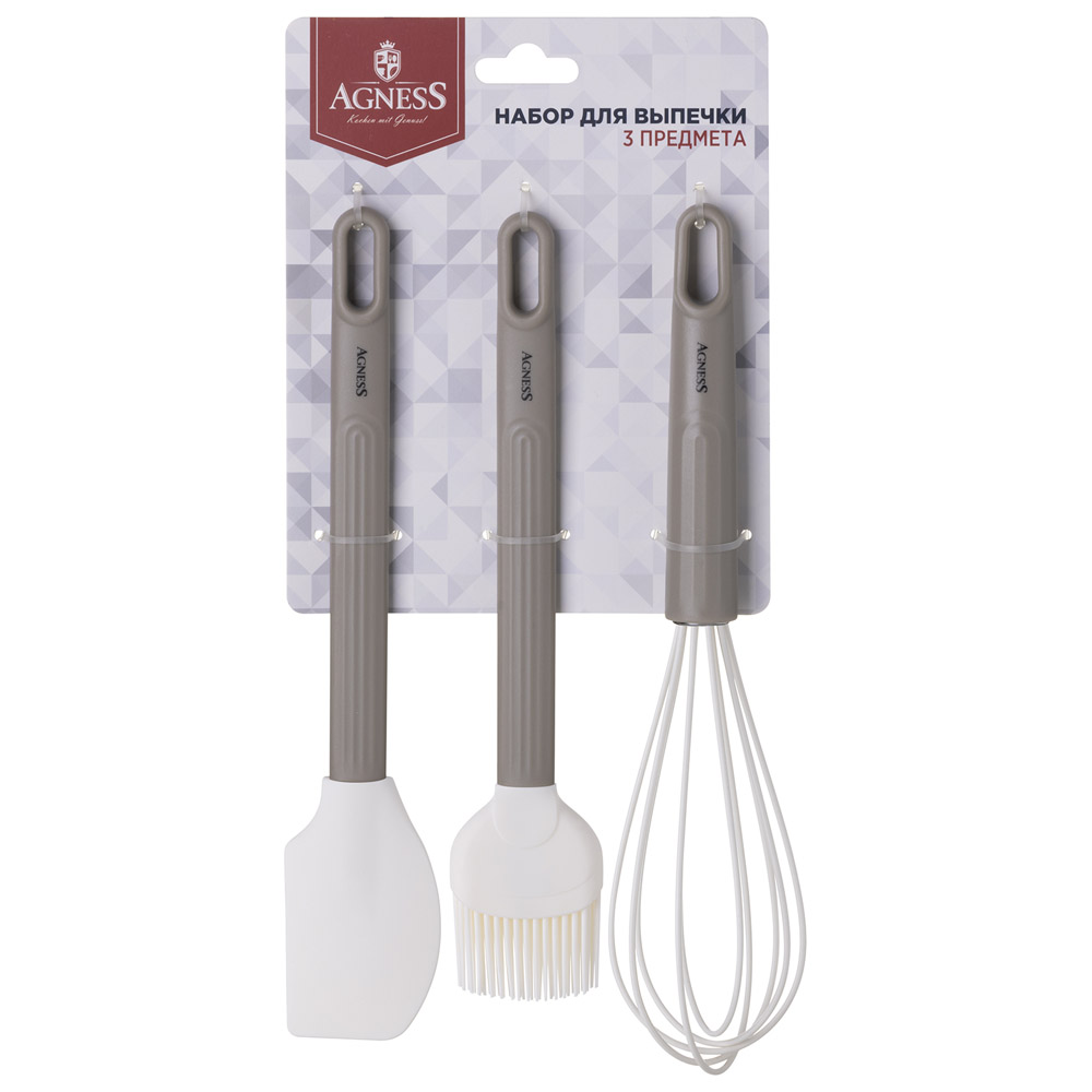 НАБОР: ВЕНЧИК, ЛОПАТКА, КИСТОЧКА AGNESS, 3 ПРЕДМЕТА