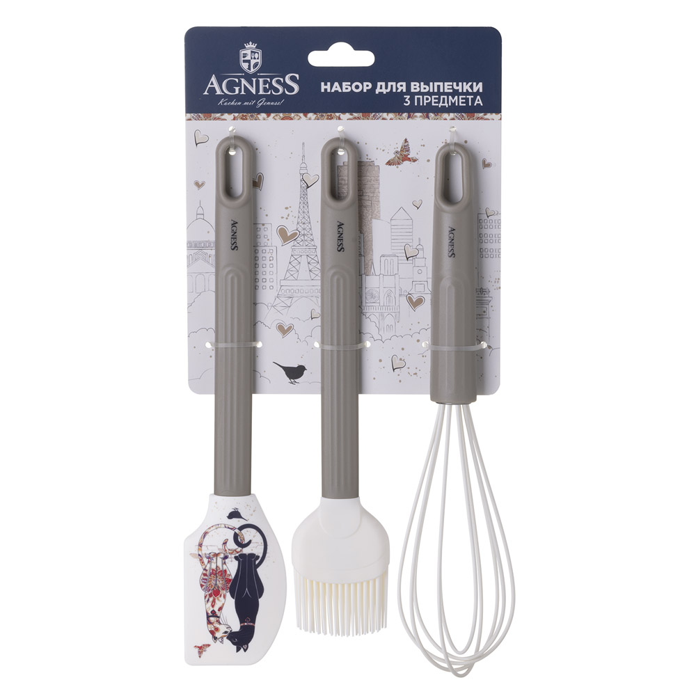 Набор кухонных принадлежностей серии "Парижские коты" бренда AGNESS станет незаменимым помощником – он содержит все необходимые для приготовления предметы для кухни. Кухонная утварь выполнена из качественных материалов. Наши предметы не царапают антипригарные покрытия и поверхности, не впитывают запахи, легко моются. Рекомендована ручная мойка. Такой набор прекрасно подойдет для дома и дачи.