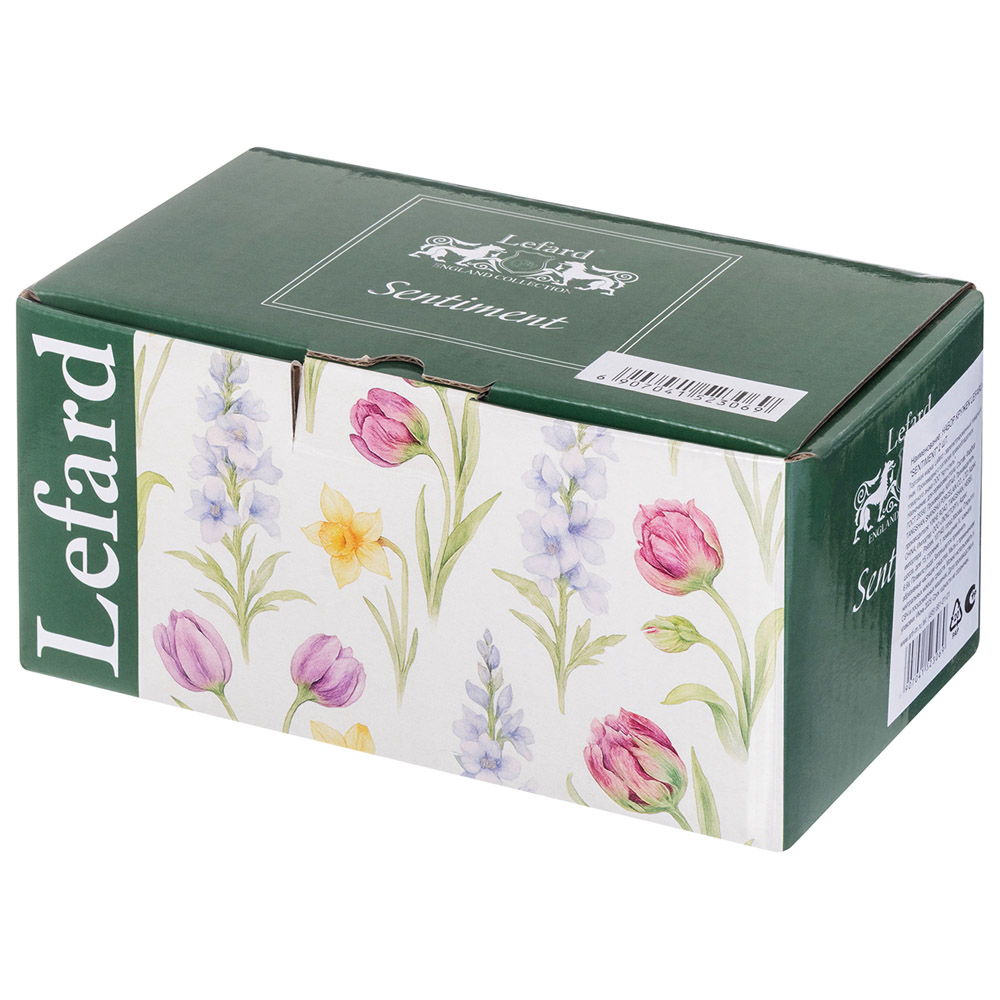 TM LEFARD "Sentiment" - это лирическое настроение и сентиментальные пожелания друзьям, родным и любимым. Изделия из белоснежного костяного фарфора с романтичным флористическим декором, передающим естественность и красоту цветов в полной мере. Удобные формы и оптимальные объемы, яркая цветная упаковка. Посуда прошла сертификацию и безопасна для контакта с пищевыми продуктами, пригодна для использования в микроволновых печах и посудомоечных машинах.