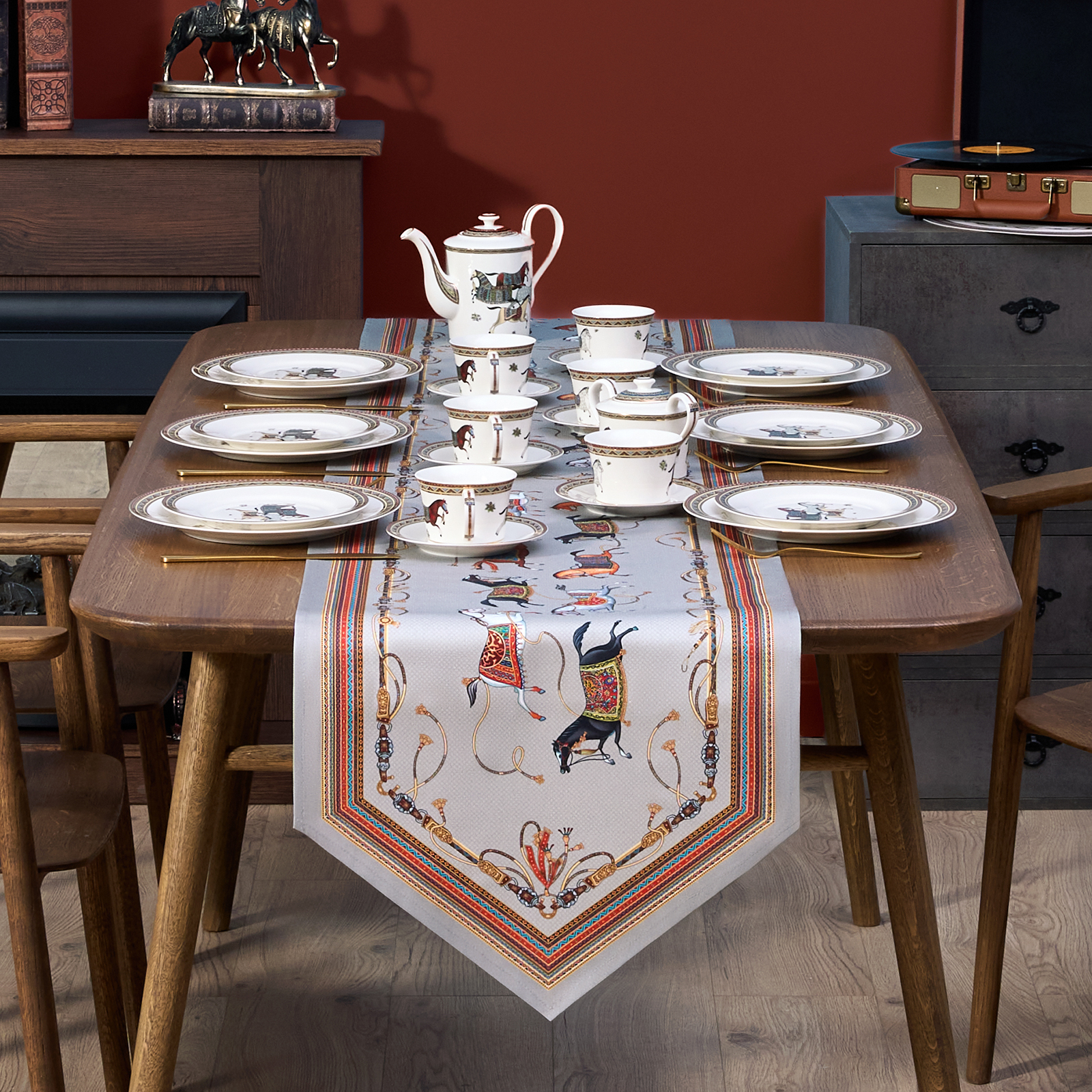 Хорошо комбинируется с однотонными скатертями, посудой в классическом или прованском стиле, текстилем в зимней палитре. Подходит для дома, дачи, загородного коттеджа. Размер 45×300 см идеально подойдёт для прямоугольных и овальных столов, позволяя создать аккуратный и завершённый образ сервировки.