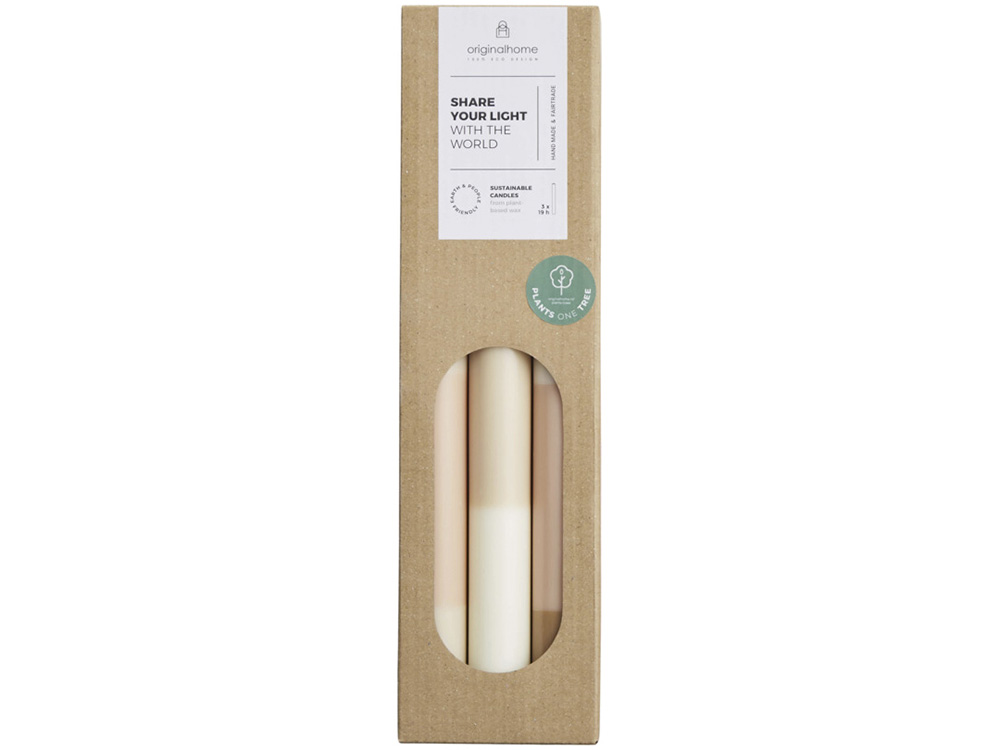 Эти свечи отличаются яркой многослойной цветовой палитрой и изготовлены вручную из воска на растительной основе, не содержащего парафина. Они не имеют запаха, имеют фитиль из 100% хлопка и горят чисто. Каждая покупка способствует посадке дерева для фермеров в Африке и поддерживает специальный проект справедливой торговли на острове Ява, Индонезия. Комплект из трех штук. Время горения свечи: 18 – 20 часов. Воск из пальмовых ядер.