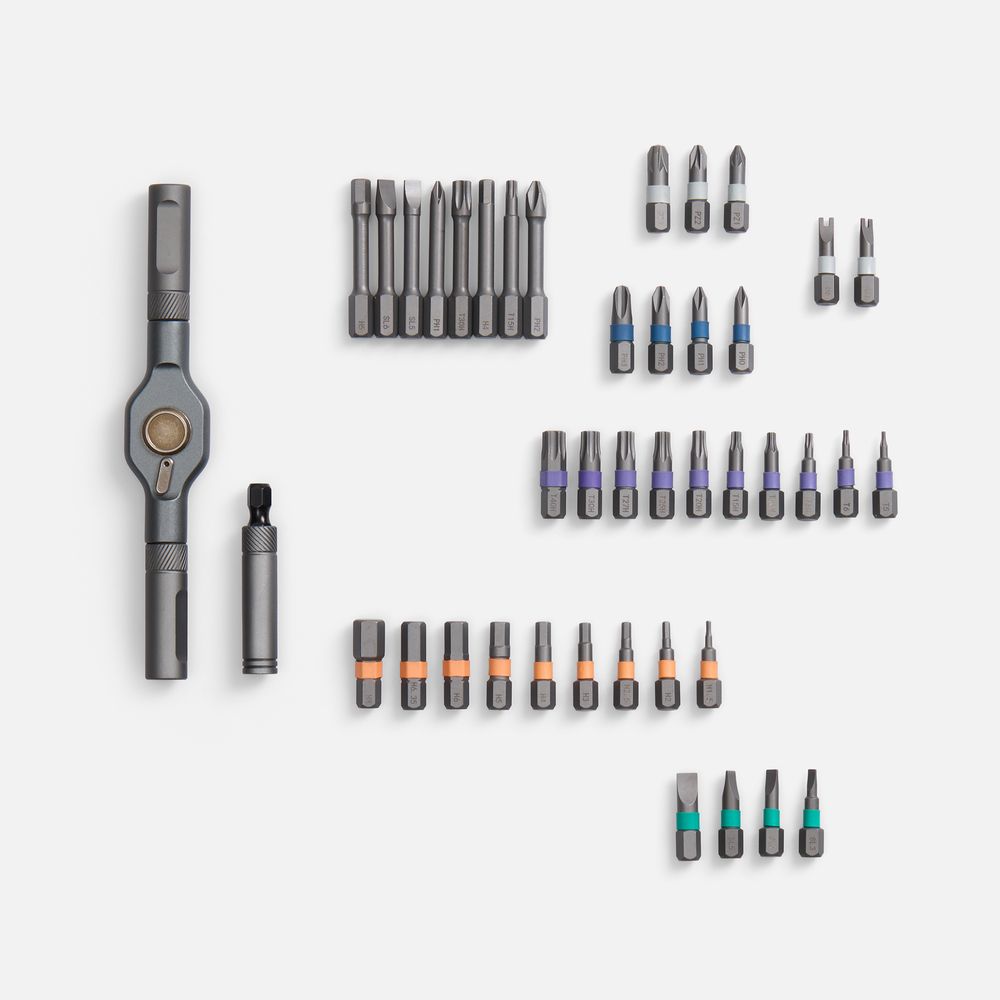 Fix Trix — там, где важна точность.В комплекте реверсивная отвертка с трещоткой, состоящая из реверсивной основы, трех съемных магнитных держателей и 40 бит: