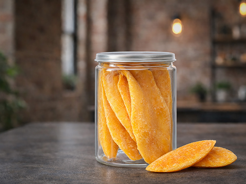 Манго в банке — это не только вкусный и полезный перекус, но и отличное дополнение к подарку. Такой формат идеально подойдёт в качестве корпоративного сувенира: практично, эстетично и универсально для любого повода. Сушёные ломтики манго сохраняют насыщенный тропический вкус. Они подойдут для лёгкого перекуса, особенно в дороге или на работе, а также могут дополнить кашу, гранолу или творог. Манго богато витаминами C и A, антиоксидантами и клетчаткой. Поддерживает иммунитет, здоровье кожи, пищеварение и дарит естественную энергию.