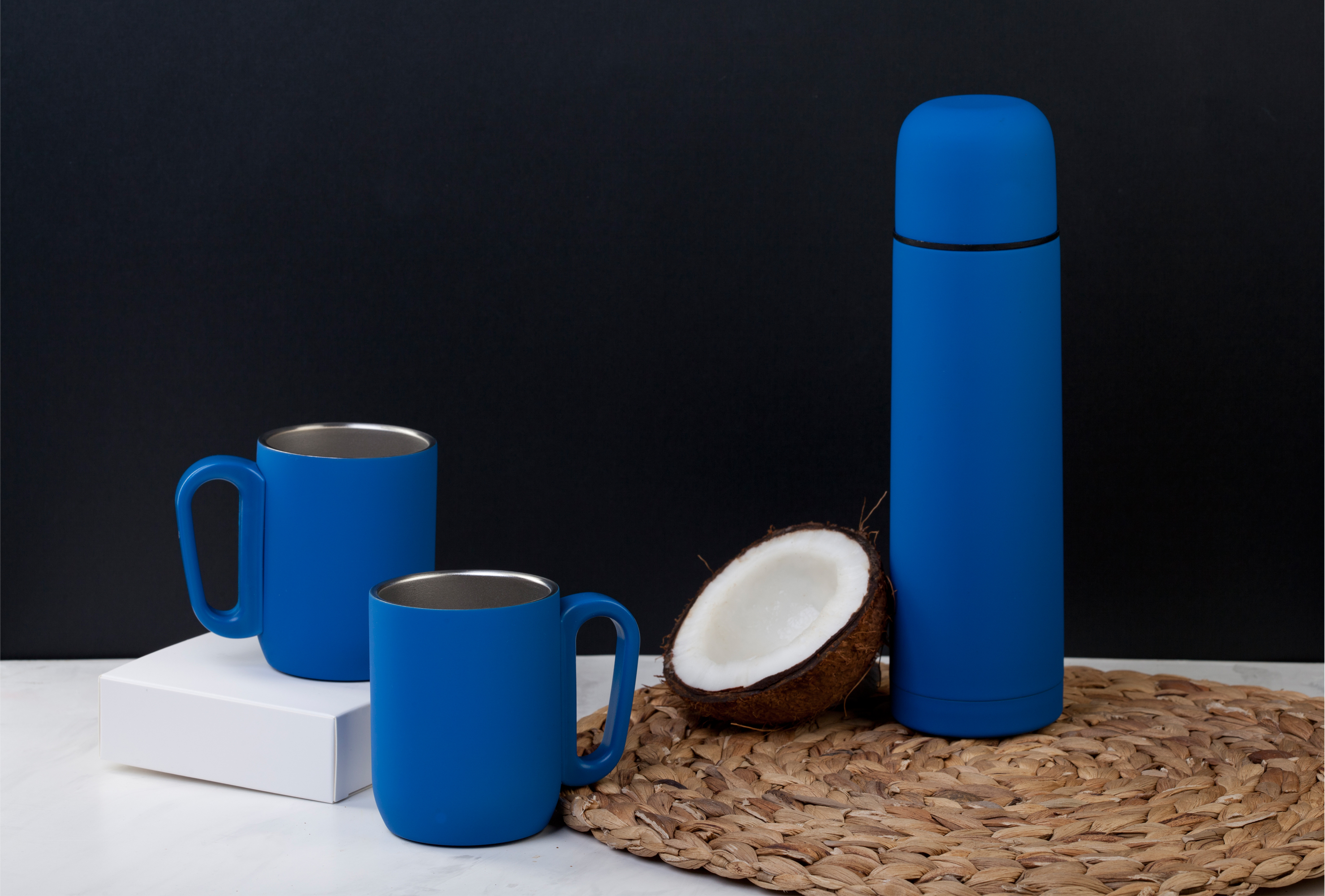 Набор Гейзер (термос, 2 кружки), покрытие soft touch, синий