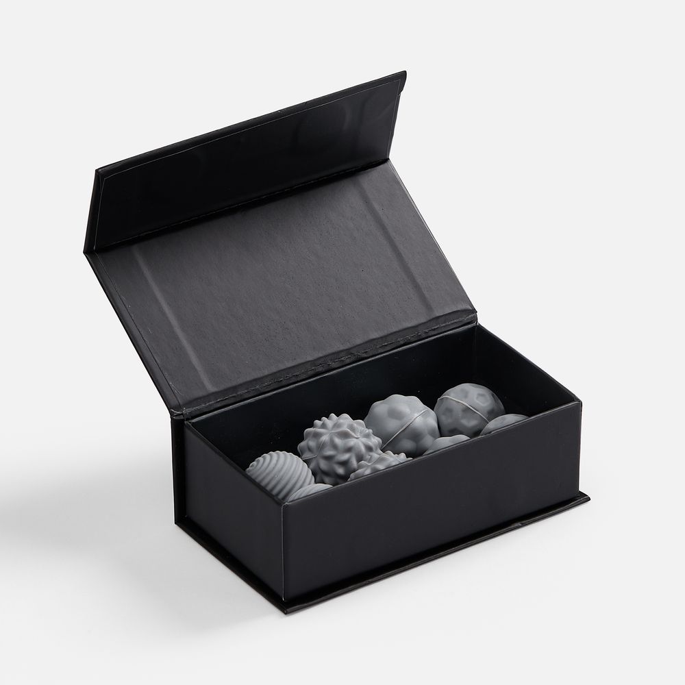 Шарики разной фактуры легко можно использовать как массажные.В комплекте: 8 шариков, мешочек, подарочная коробка на магнитном клипе.