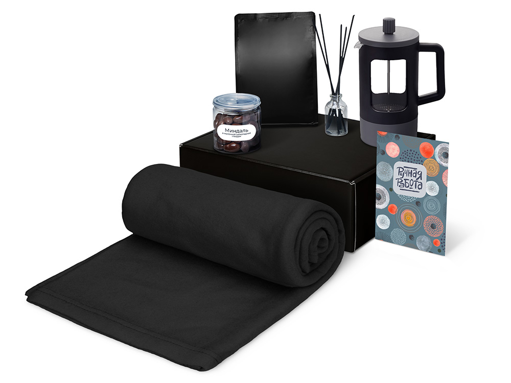 | Материал | плед - флис, полиэстер, кофе - пластик, френч-пресс - нержавеющая сталь, боросиликатное стекло, ПП пластик, диффузор - стекло, миндаль - пластик, мешок - нетканый материал (спанбонд), коробка - картон |