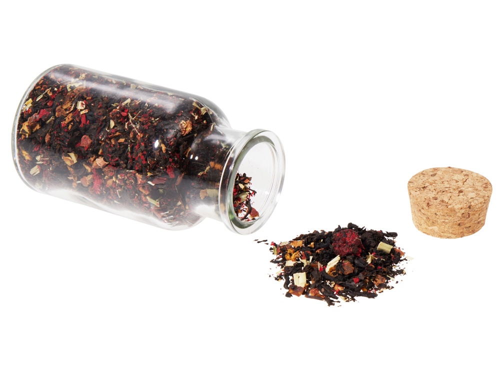 Состав: чай черный с ананасом и соком ананаса (чай черный байховый крупнолистовой, кусочки ананаса, сок ананаса), вишня сублимированная, цветки граната, корка граната, лемонграсс, ароматизатор натуральный Вишня, ароматизатор натуральный Апельсин.