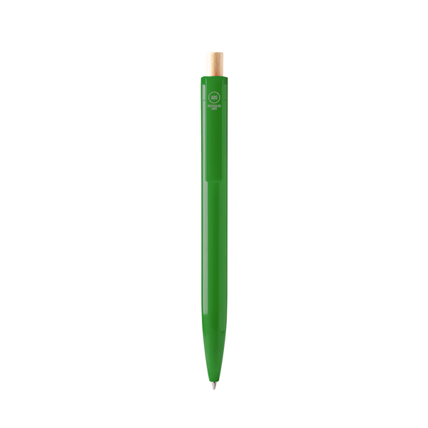 Шариковая ручка из переработанного ABS пластика с бамбуковой кнопкой. Джамбо-заправка синими чернилами.