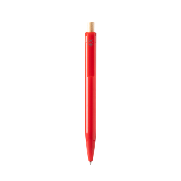 Шариковая ручка из переработанного ABS пластика с бамбуковой кнопкой. Джамбо-заправка синими чернилами.