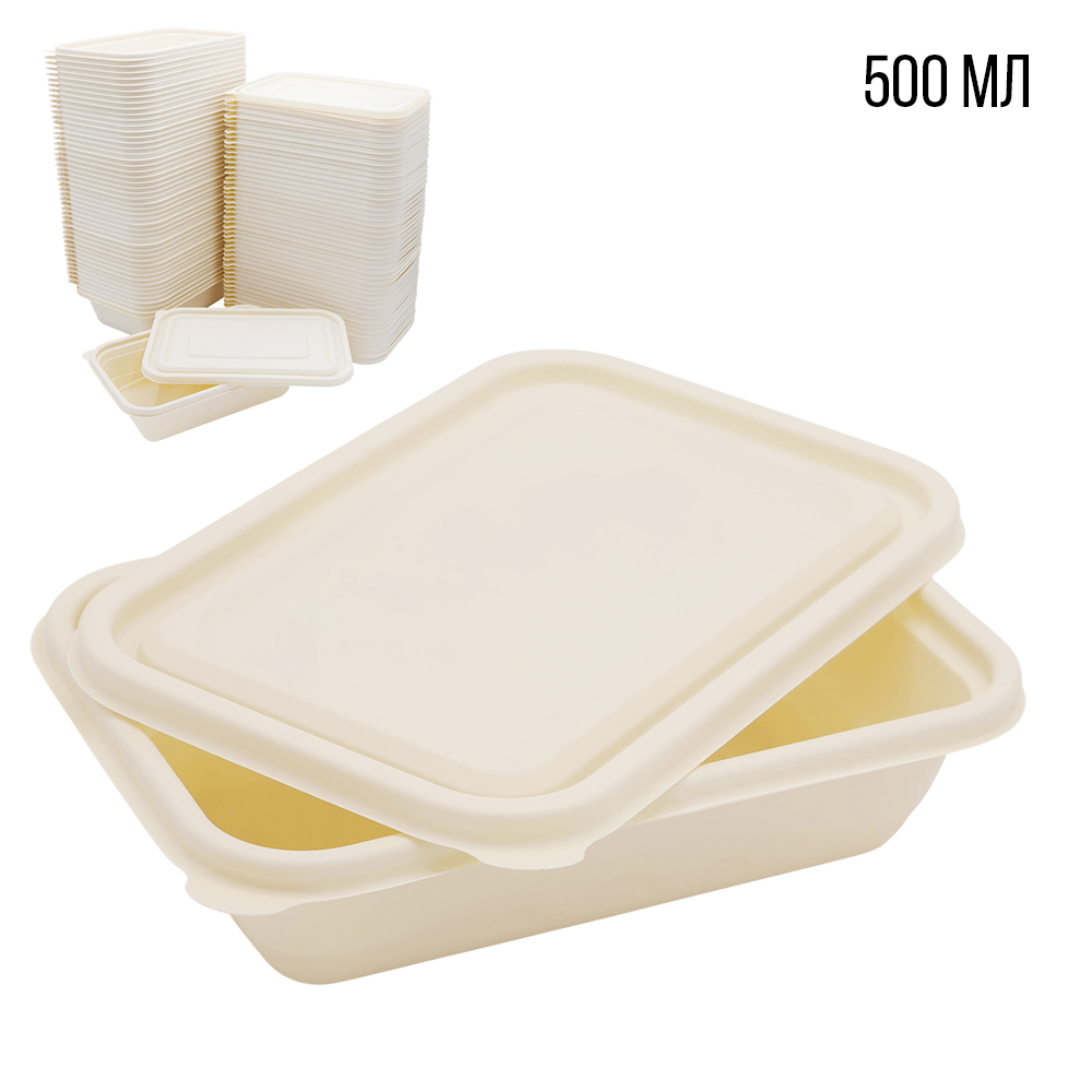 Набор контейнеров с крышкой из кукурузного крахмала, 500 мл (50шт)
