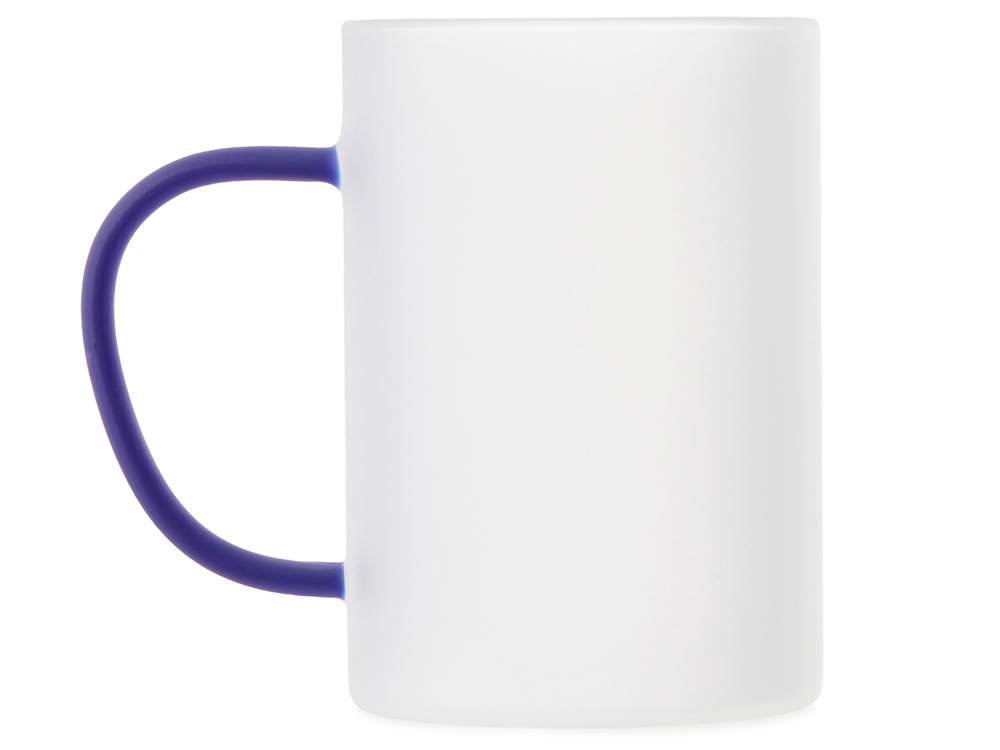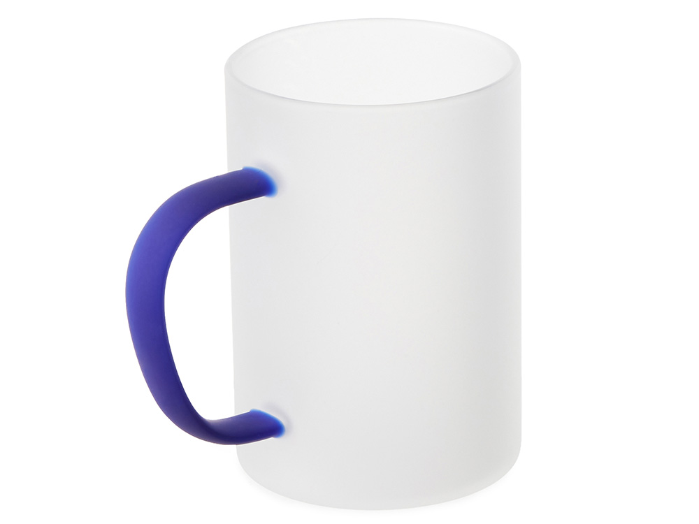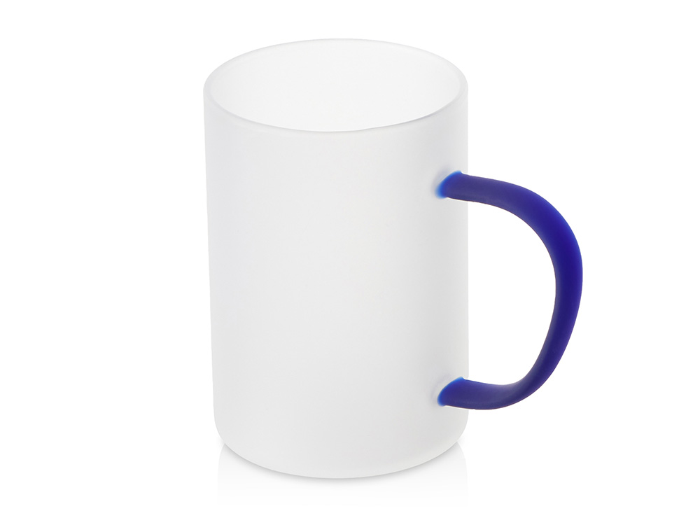 Стеклянная матовая кружка Акцент с цветной ручкой для сублимации, синий