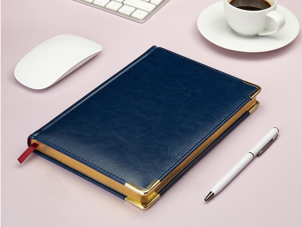 Ежедневник А5 датированный Sidney Nebraska 2026, синий (золотой обрез, золотые уголки)