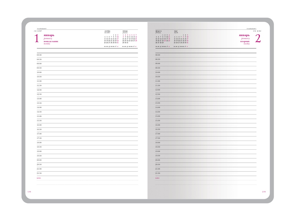 Твердая обложка из искусственной кожи с благородной глянцевой поверхностью, максимально повторяющей фактуру натуральной кожи, и практичный книжный переплет надежно предохраняют блок от механических повреждений.