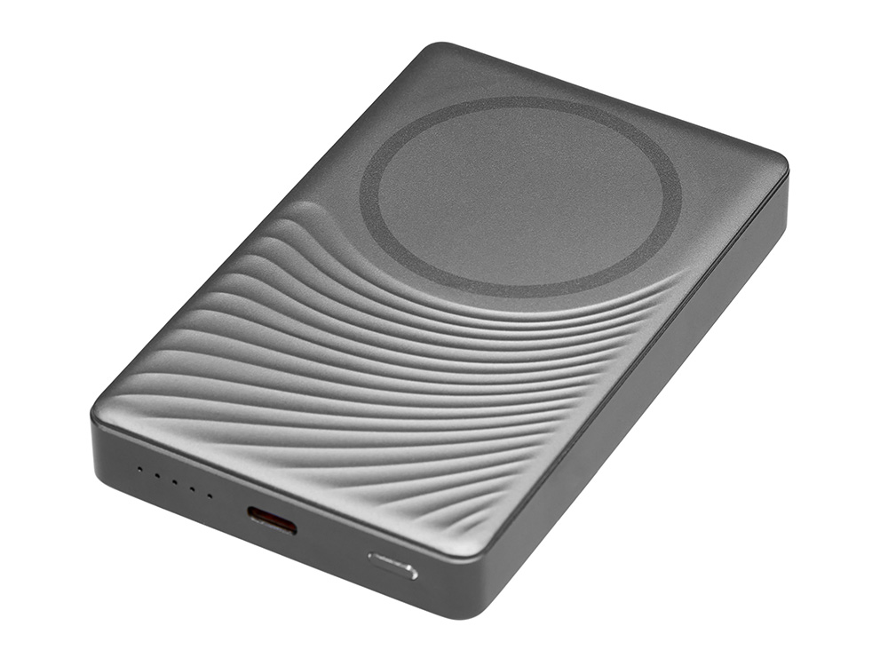 Магнитный внешний аккумулятор Сёрф – это идеальное решение для тех, кто ценит сочетание инноваций, надежности и безупречного дизайна. Сёрф не только технологичный гаджет, но и стильный аксессуар. Уникальная текстура на передней панели из прочного АБС-пластика и металлический корпус создают ощущение премиальности. Каждая линия подчеркивает современный подход к деталям – ваш логотип станет неотъемлемой частью этого шедевра. Сильные магниты обеспечивают мгновенное и стабильное прикрепление к iPhone и чехлам с магнитным кольцом (MagSafe).