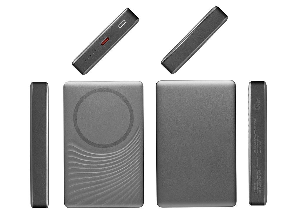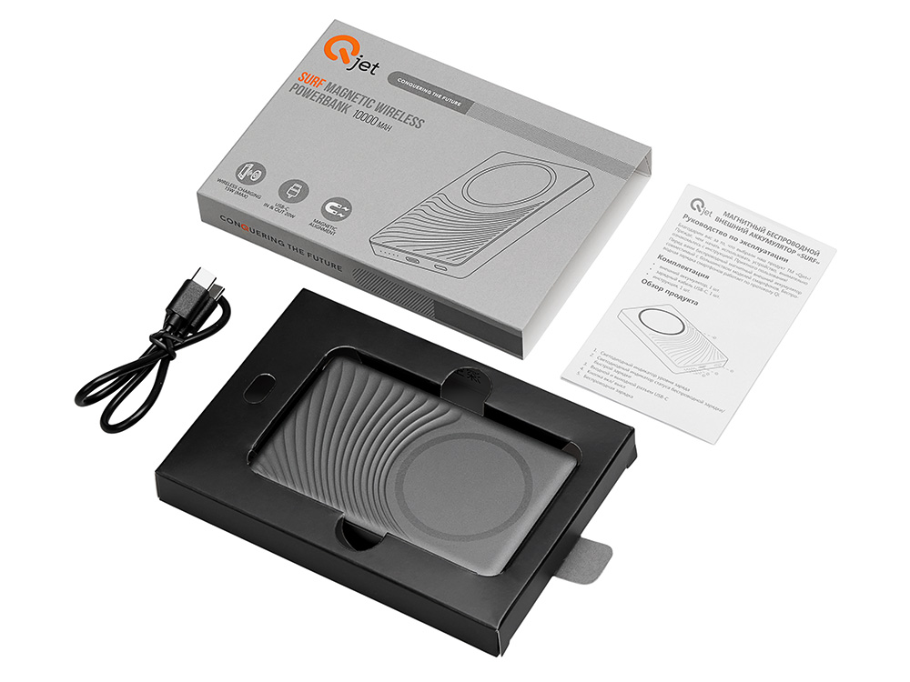 Магнитный беспроводной внешний аккумулятор, QC/PD Сёрф, 10000 мАч, серый