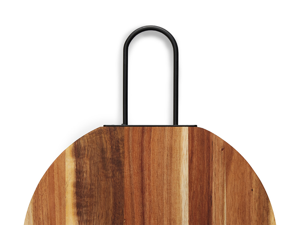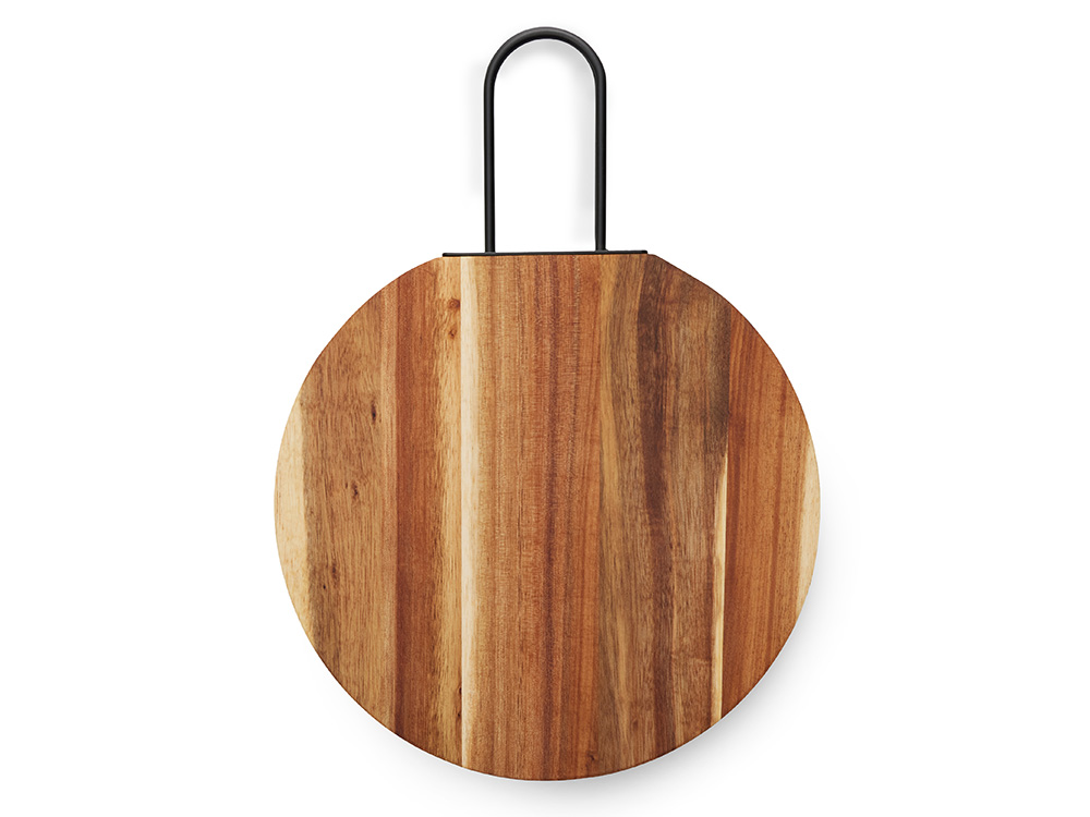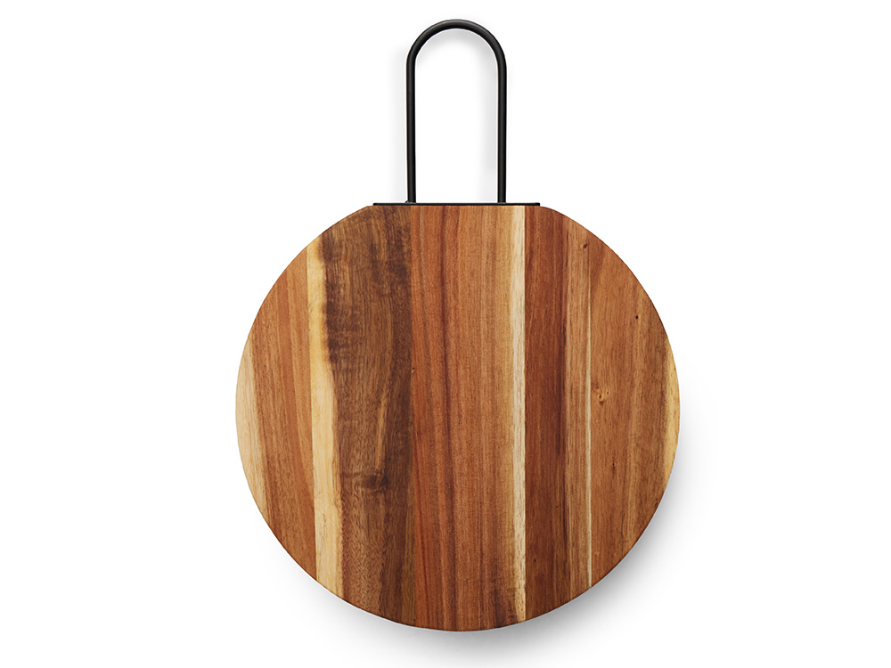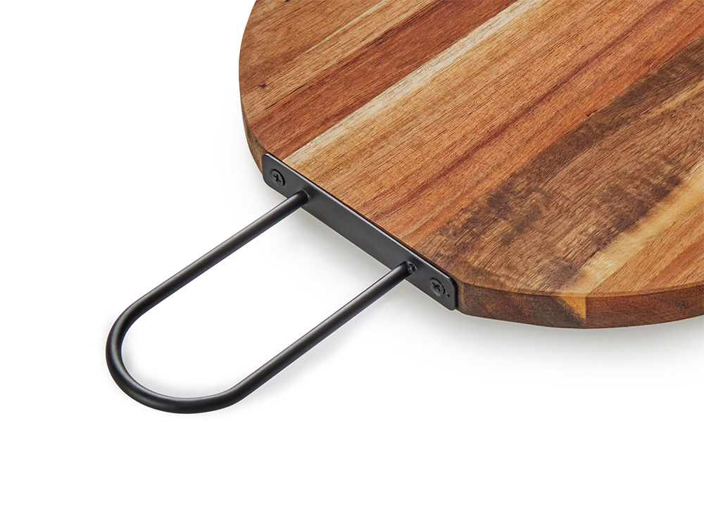 Деревянная круглая доска из акации с металлической ручкой Кира