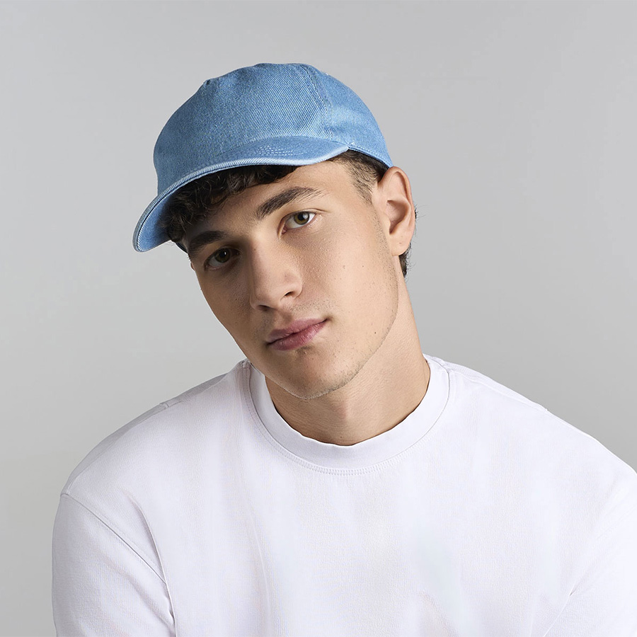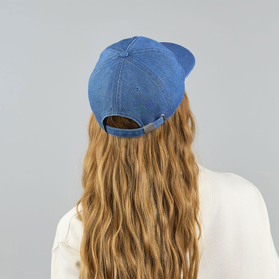 Мягкая неструктурированная бейсболка IRAYA из джинсовой ткани, изготовленная из переработанного хлопка и окрашенная по технологии DyStar® Indigo, которая сокращает потребление воды, энергии и химикатов по сравнению с традиционными методами окрашивания джинсовой ткани.