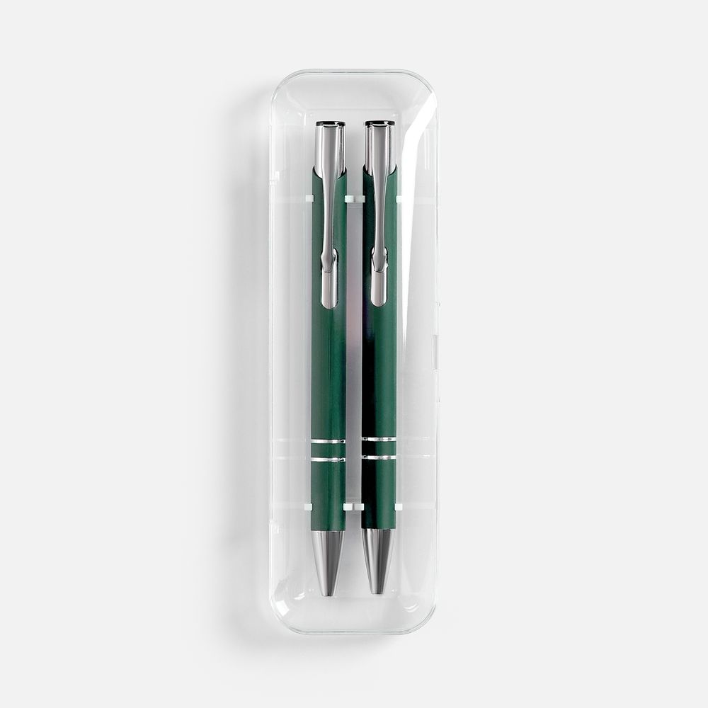 Набор из двух ручек Keskus с покрытием софт-тач в прозрачном пластиковом футляре.