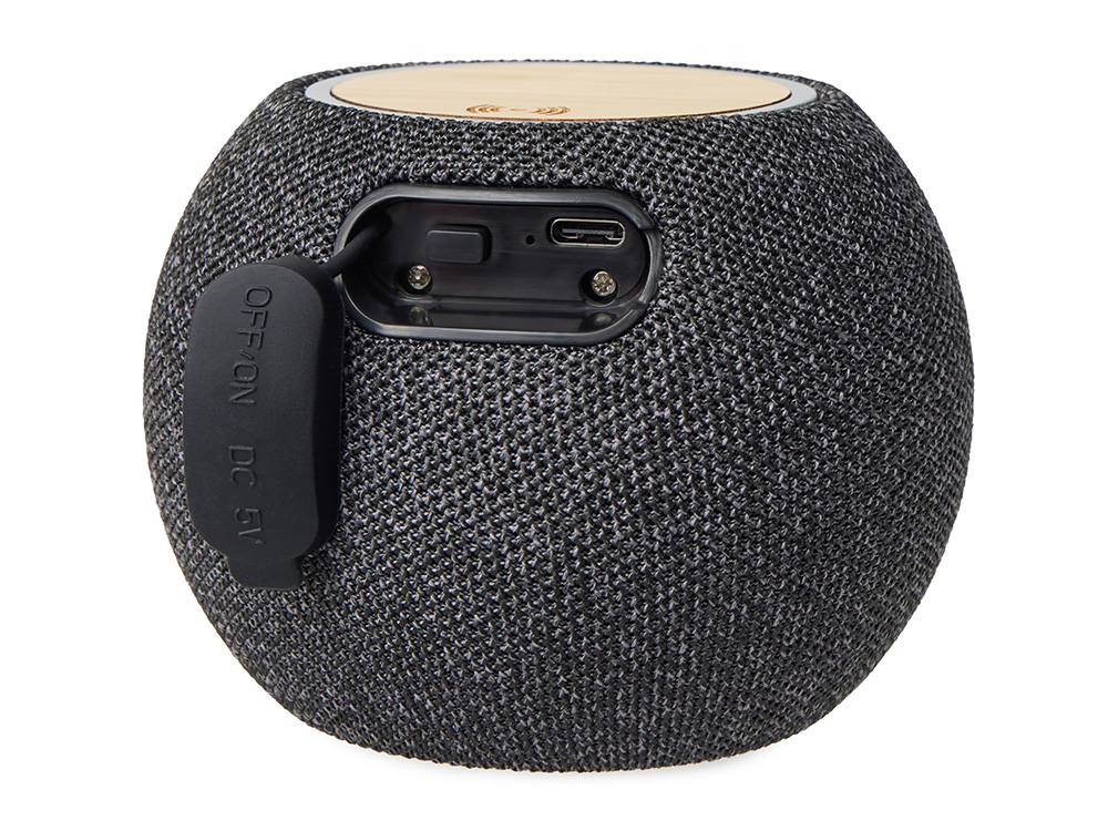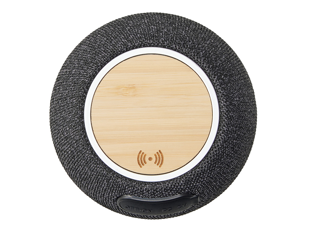 Bluetooth-колонка мощностью 5 Вт обеспечивает качественное звучание для средней комнаты или офиса. А верхняя панель из бамбука с беспроводной зарядкой позволяет подзаряжать смартфон, просто положив его на колонку. Зарядка работает при подключении кабеля — удобно и практично!