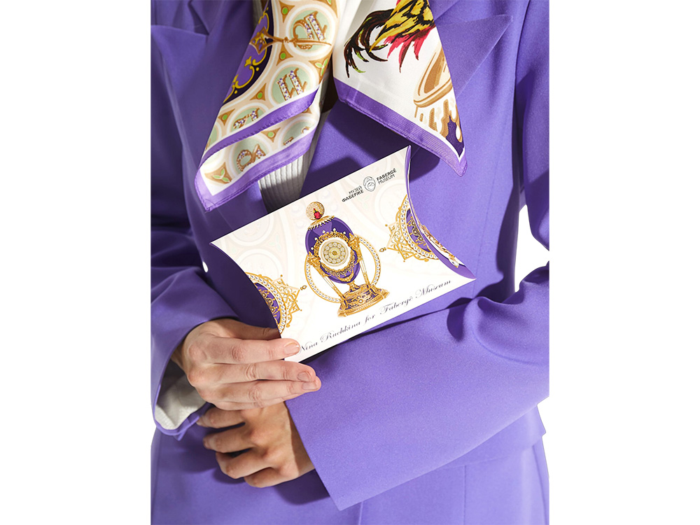 • Золото, алмазы, жемчуг, перья; литье, чеканка, гравировка, выпиловка, эмаль по гильошированному фону.