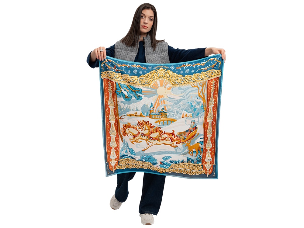 Платок Русская зима воплощает фольклорный образ красавицы-зимы.