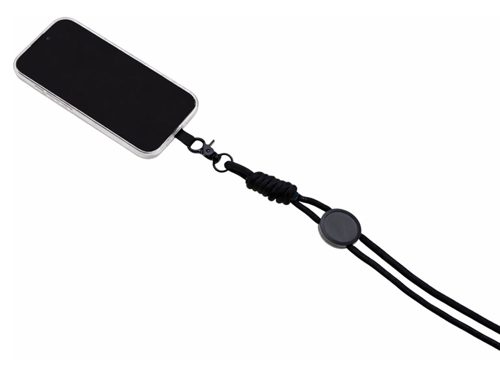 Прочный плетёный шнур устойчив к износу, а надежный карабин позволяет безопасно закрепить смартфон, бейдж, пропуск, ключи или другие необходимые аксессуары.