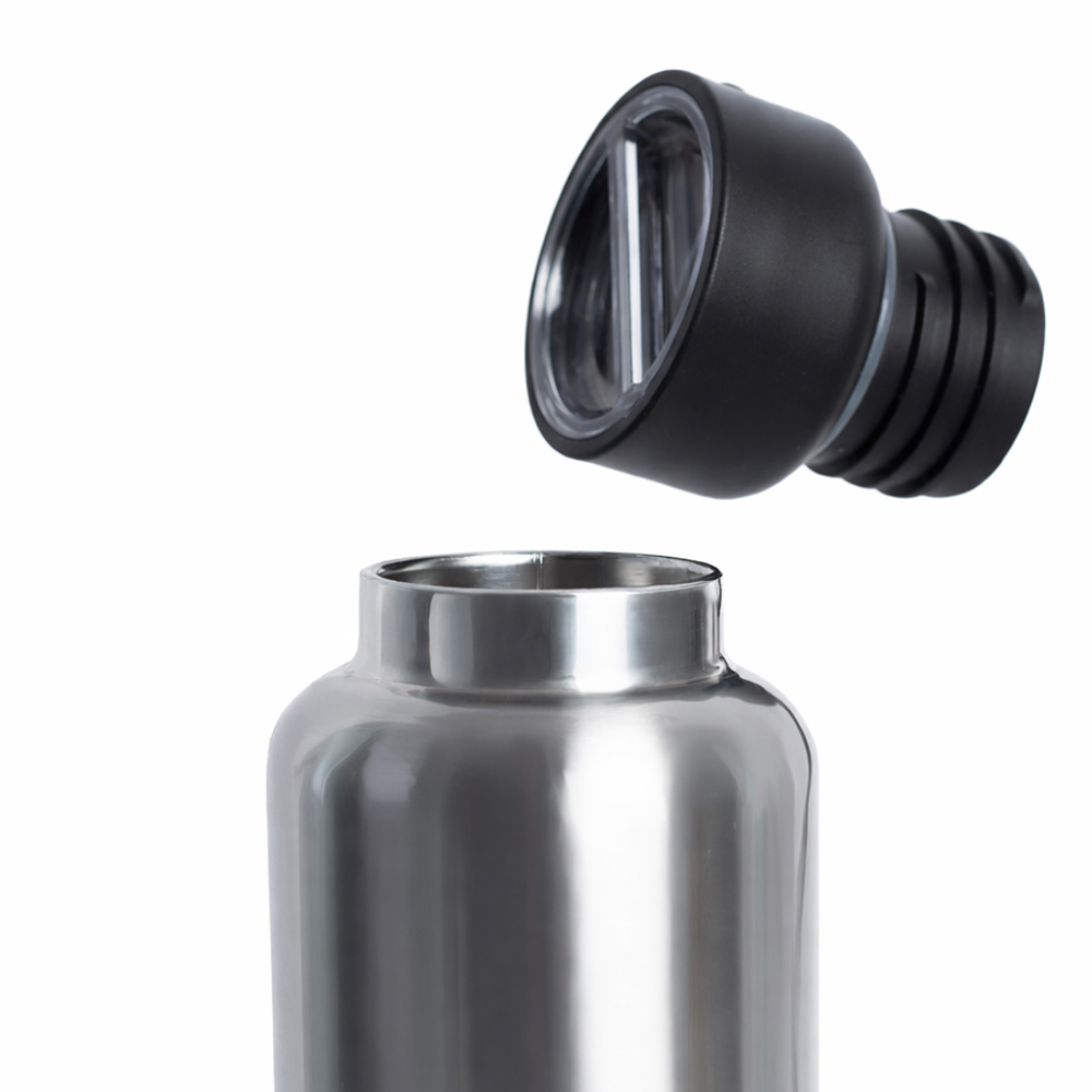 Конструкция надёжная и прочная: двойные стенки из нержавеющей стали, крышка и подстаканник-манжета из пластика.