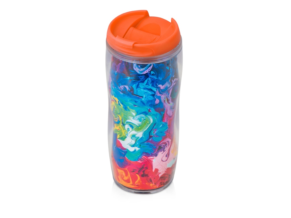 Термокружка Mony 400мл, под цифровую печать, прозрачный/оранжевый