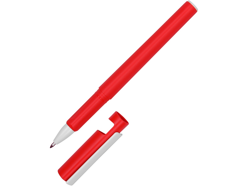 Ручка пластиковая шариковая трехгранная Nook с подставкой для телефона в колпачке, красный/белый
