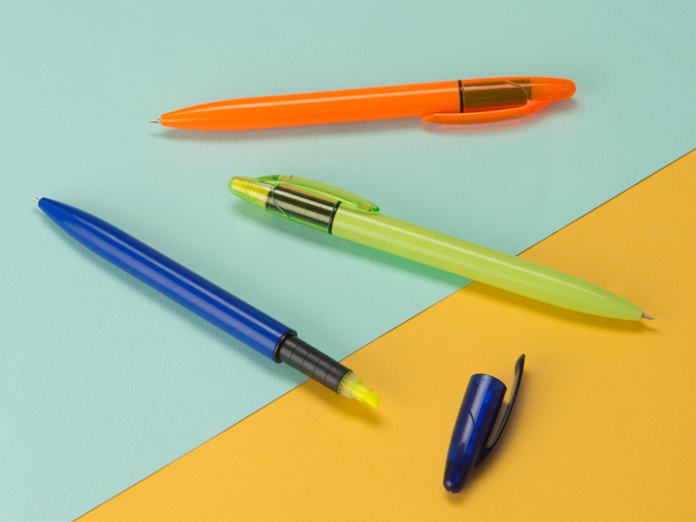 Mark - это сразу и шариковая ручка, и хайлайтер. С помощью одного письменного предмета вы можете делать записи и потом выделять наиболее важные фрагменты. Пластиковая ручка имеет поворотный механизм клипа и очень удобно лежит в руке.