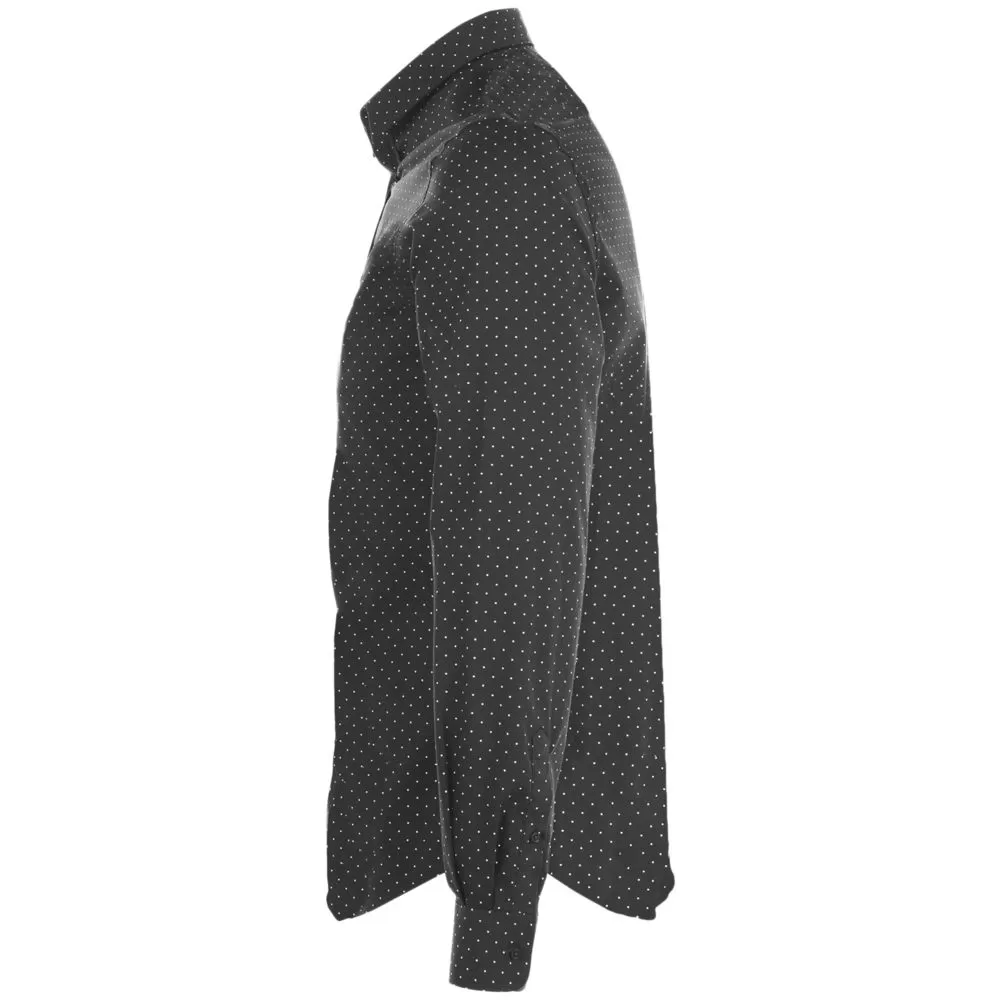 Модная рубашка с печатным рисунком в горошек, которая прекрасно впишется в современный корпоративный стиль.Облегающая модель с маленьким классическим воротничком, планкой с 7 пуговицами тон в тон и манжетами на 1 пуговице с разрезом «капуцин».