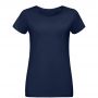 Приталенная кроеная футболка с женственной круглой горловиной. Ворот в тонкую резинку с укрепляющей тесьмой.