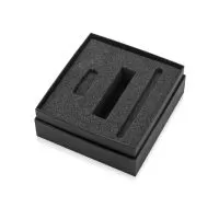 Коробка с ложементом для зарядного устройства и ручки. Коробка изготовлена из переплетного картона кашированного дизайнерской бумагой эфалин, ложемент изготовлен из поролона премиум-класса.