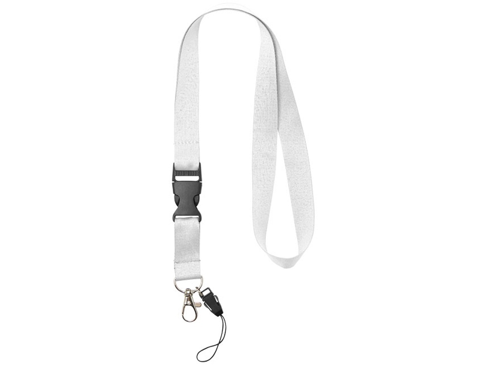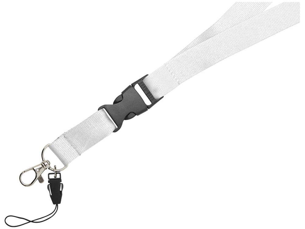Многофункциональный шнурок с отстегивающейся пряжкой, овальным крючком с зажимом и держателем для телефона. Идеально подходит для бейджа, удостоверения личности или ключей. Предлагается широкий выбор цветов с большим участком для нанесения логотипа. Полиэстер.