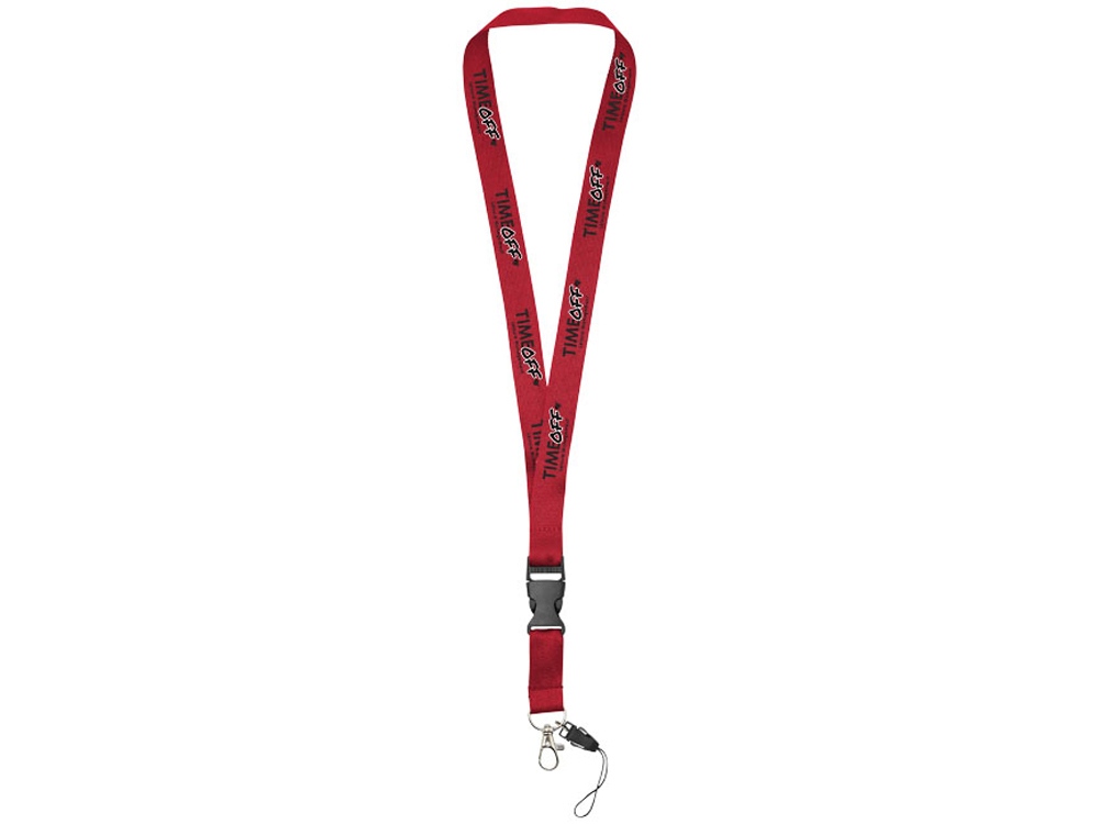 Многофункциональный шнурок с отстегивающейся пряжкой, овальным крючком с зажимом и держателем для телефона. Идеально подходит для бейджа, удостоверения личности или ключей. Предлагается широкий выбор цветов с большим участком для нанесения логотипа. Полиэстер.