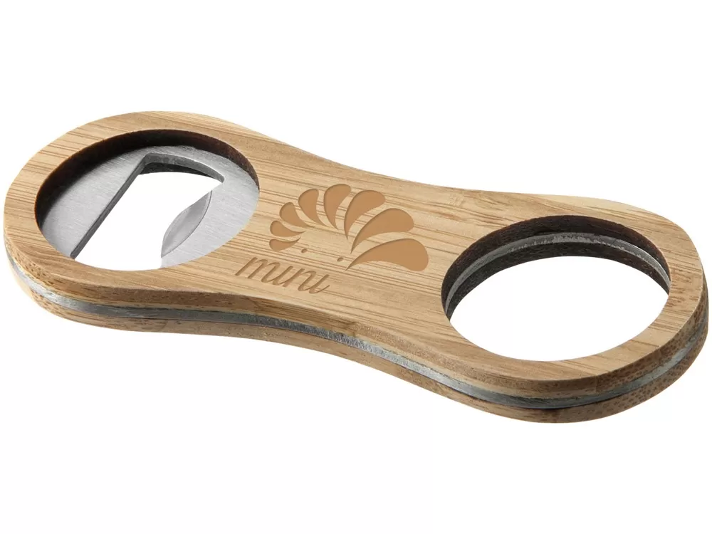 Бамбуковая открывалка для бутылок Barron. Открывалка для бутылок, изготовленная из прочного бамбукового материала с логотипом по середине. Бамбук и нержавеющая сталь.
