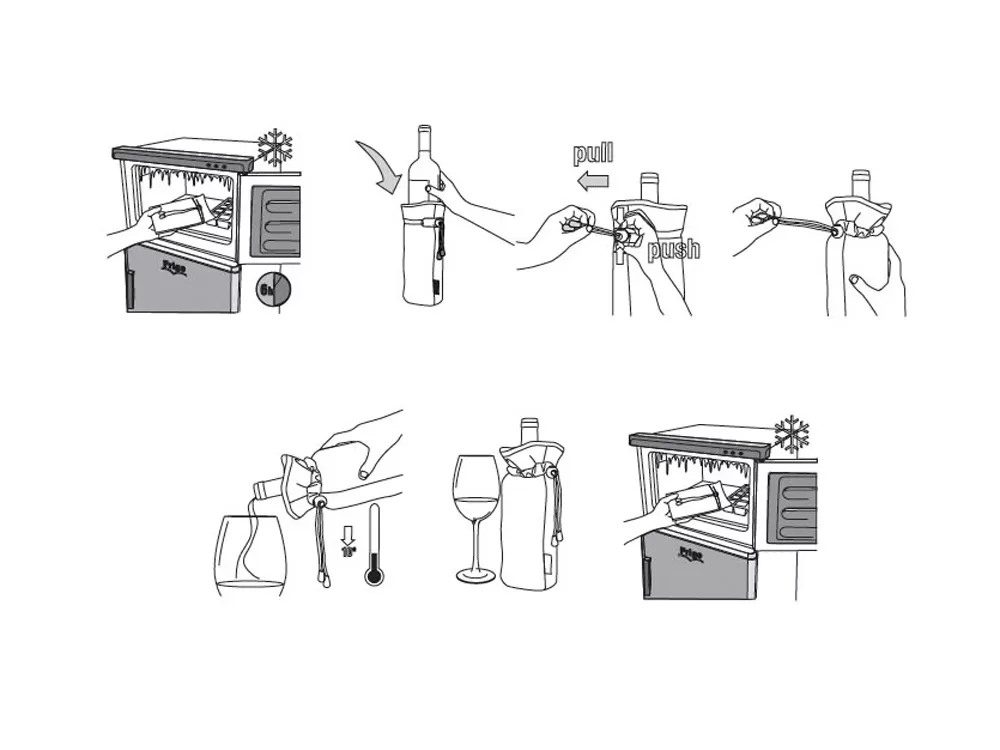 Охладитель в виде мешочка сохранит идеальную температуру бутылки вина в течение всего приема пищи. Храните охладитель в морозильной камере, чтобы он был готов к использованию в случае необходимости.